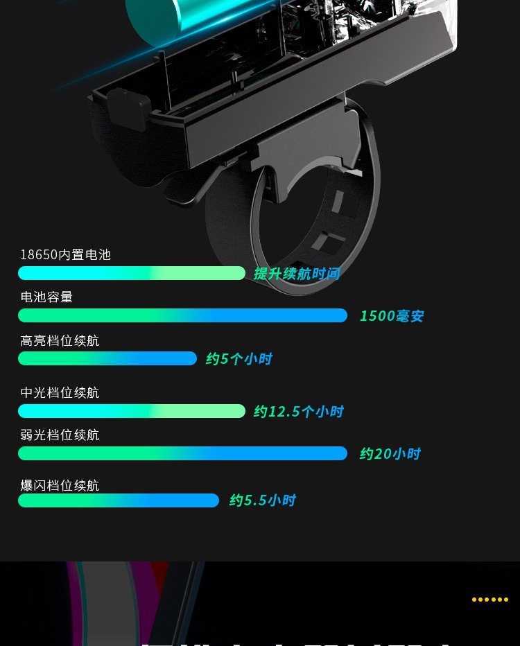 续航时间 强:5小时 中:12.5小时 弱:20小时 爆闪:5.5小时
