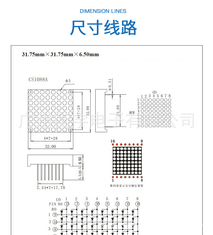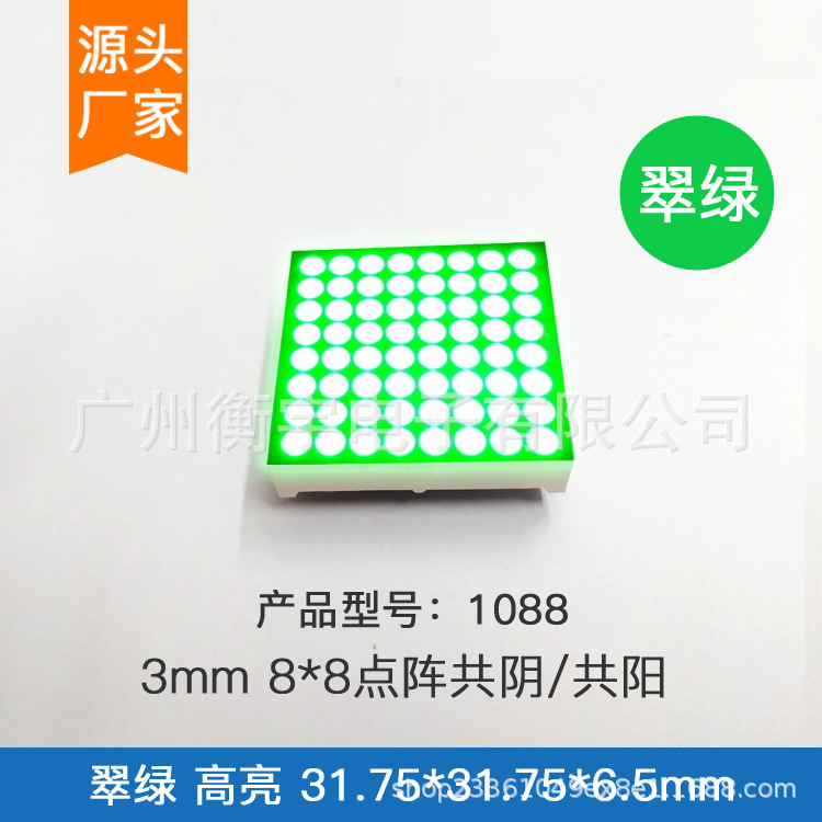 Ф3mm 8*8 точечная матрица 1088BGG изумрудно-зеленый свет подсветка Ф3mm 8*8 светодиодный решетка изумрудно-зеленый световой квадрат