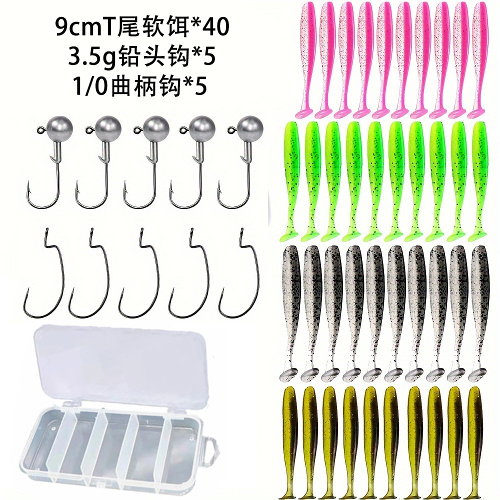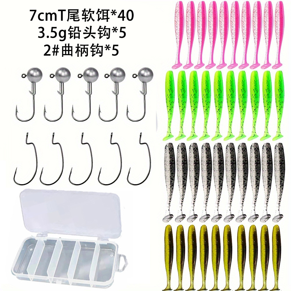 Комплект из 50 частей T-хвост свинцовый крючок комбинированный T-хвост мягкая приманка кокрючок комбинированный мягкий червь