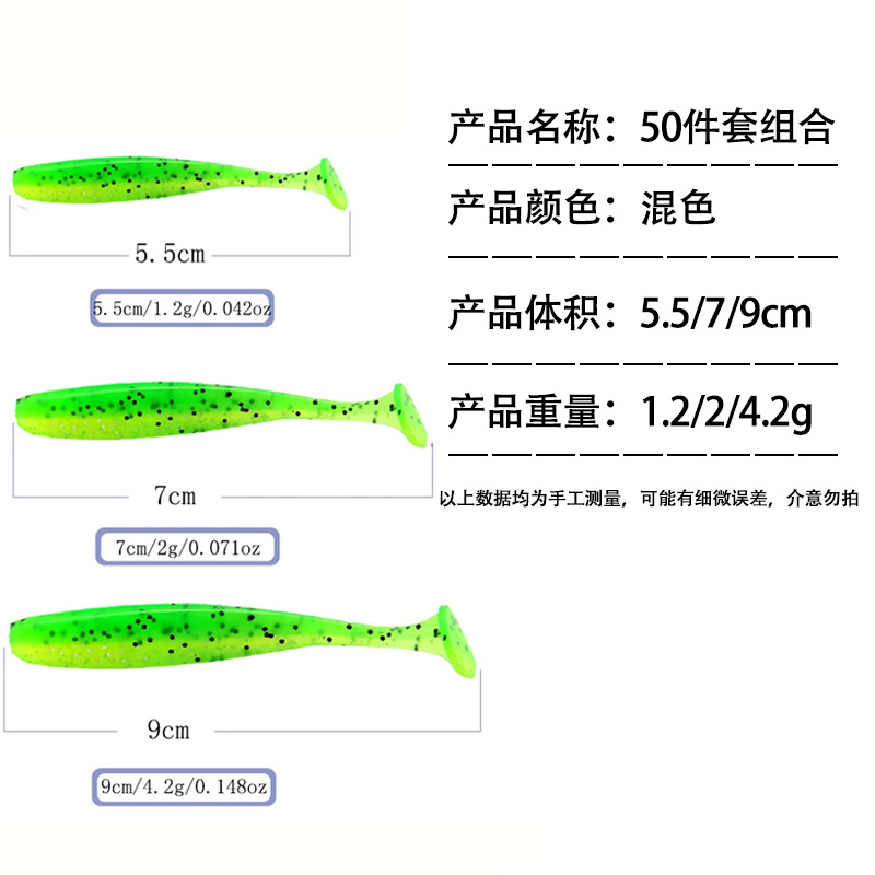 Комбинация мягкой приманки 5,5 см - поставляется с коробкой для рыболовных снастей.; Комбинация мягкой приманки 7 см - в комплект входит коробка для рыболовных снастей.; Мягкая приманка толщиной 9 см в комплекте идет коробка для рыболовных снастей.