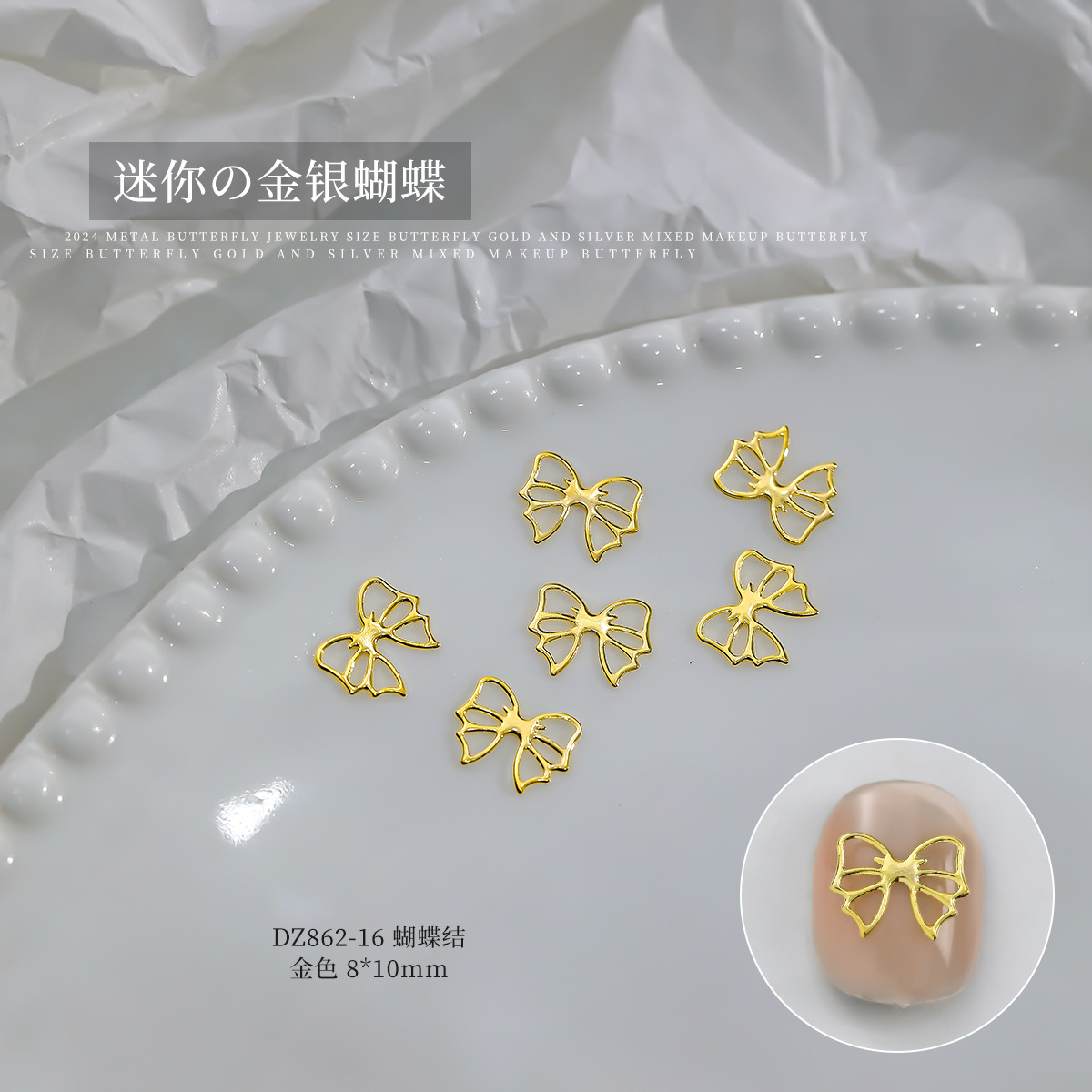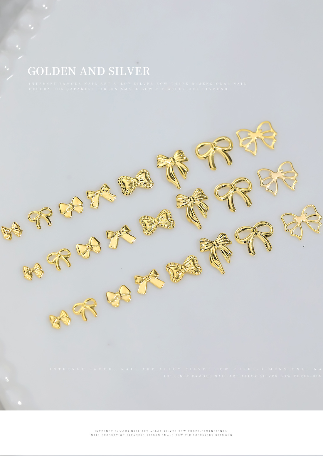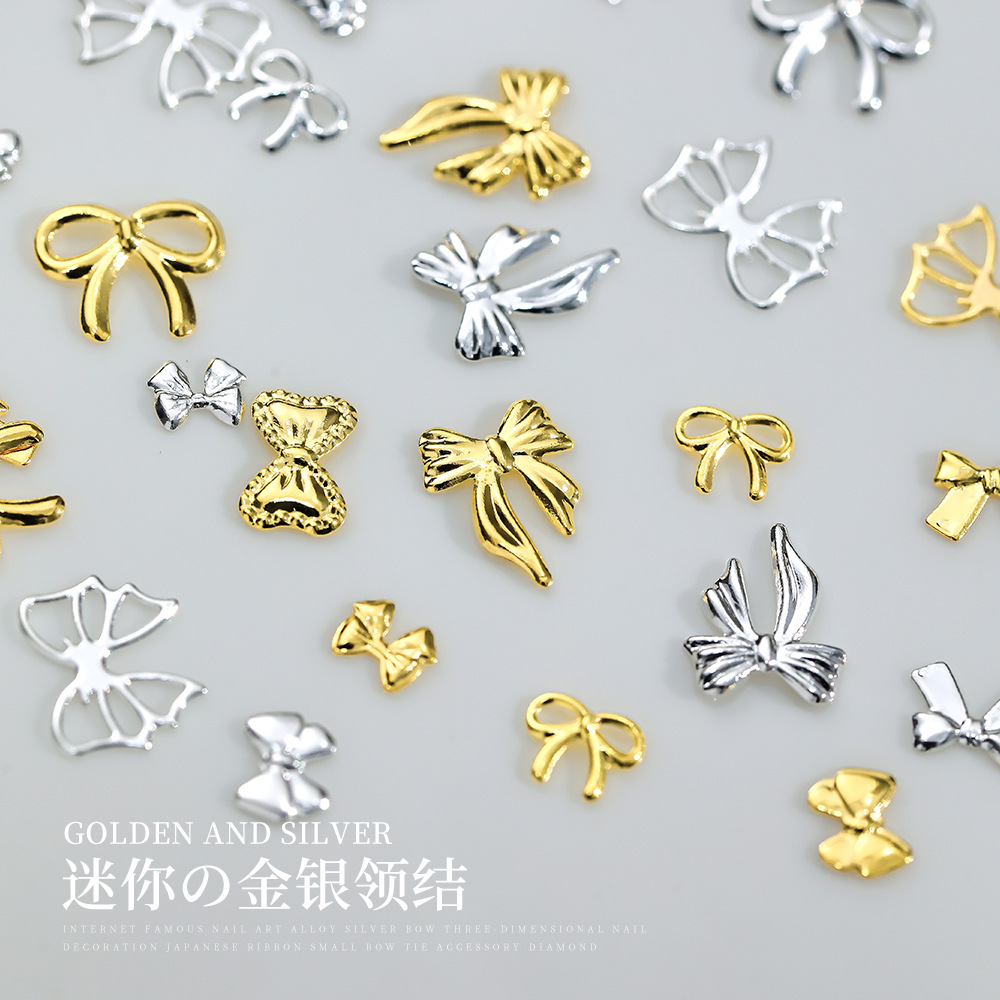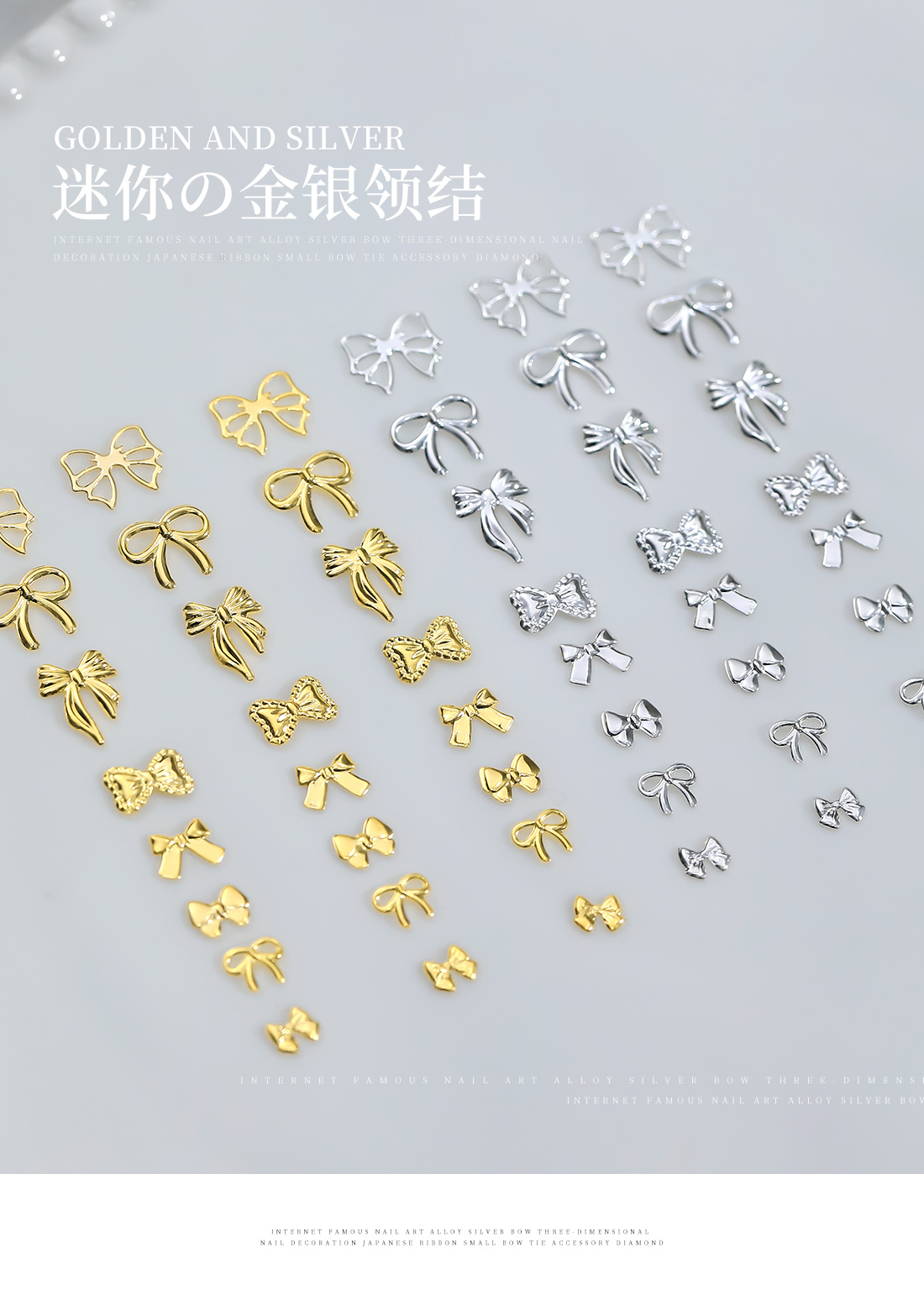 Сплав бант маникюрная ювелирная сеть красный золотой серебряный размер легкий экстравагантный полый галстек-бабочка для украшения ногтей оптом