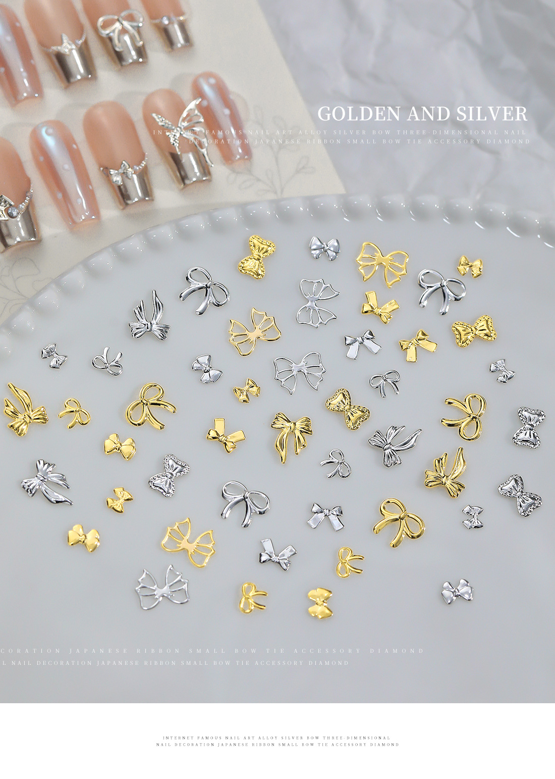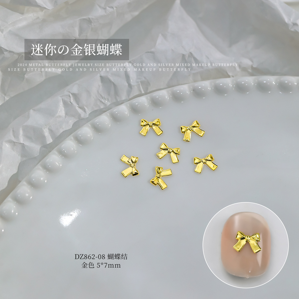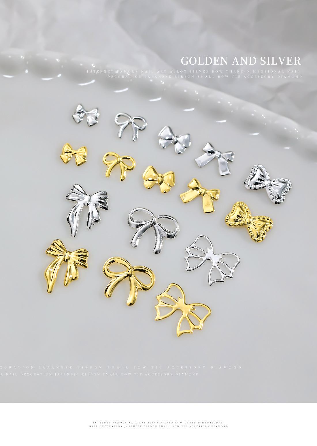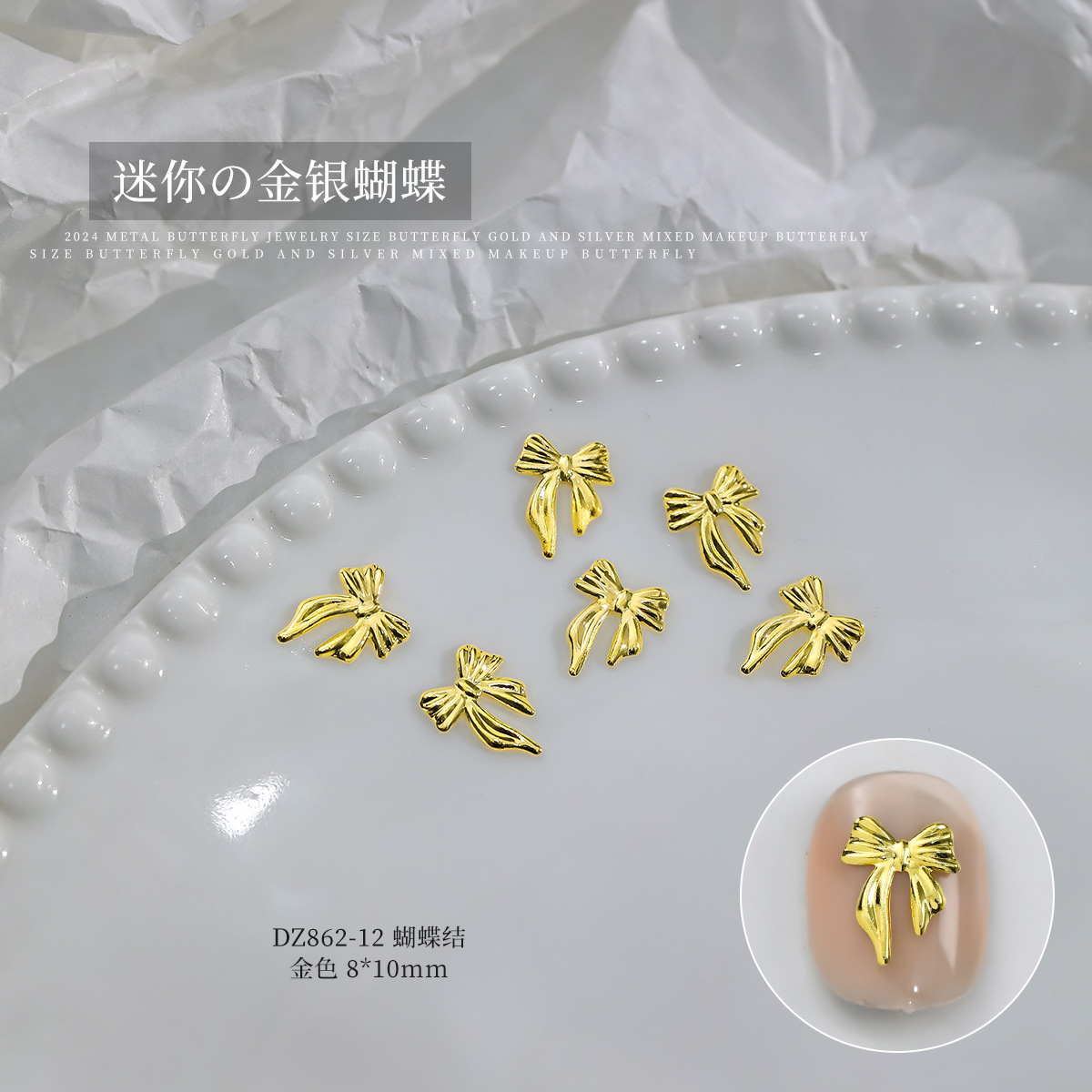 Сплав бант маникюрная ювелирная сеть красный золотой серебряный размер легкий экстравагантный полый галстек-бабочка для украшения ногтей оптом