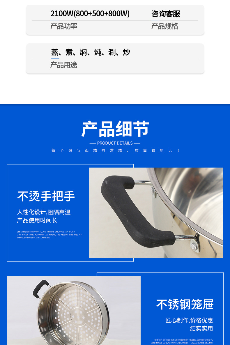 Электрическая кастрюля из нержавеющей стали, универсальная кастрюля для приготовления на пару и варки, электрическая сковорода, рисоварка с подключением к сети, многофункциональная бытовая электрическая кастрюля