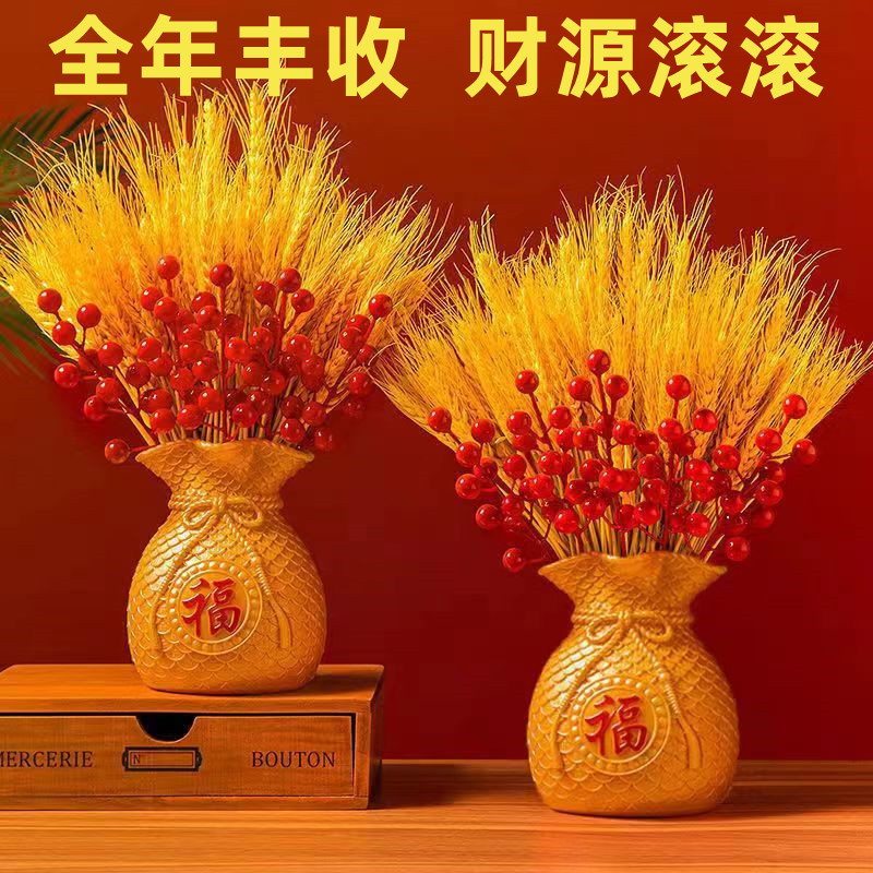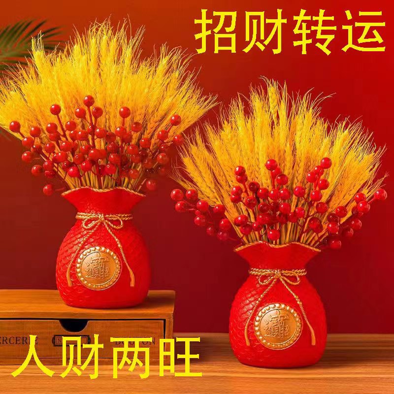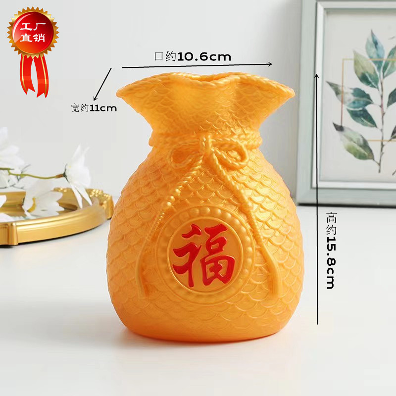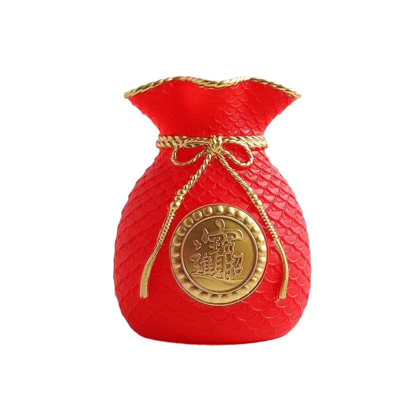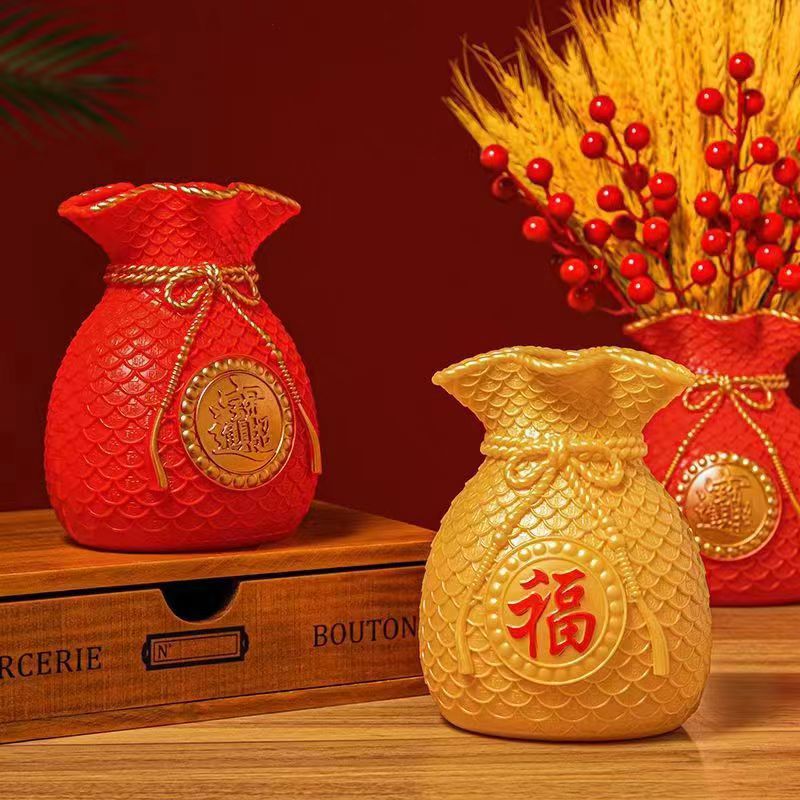 Красная ваза-сумка удачи, денежная сумка-символ богатства, праздничная декоративная ваза с искусственными цветами, украшение для привлечения богатства.