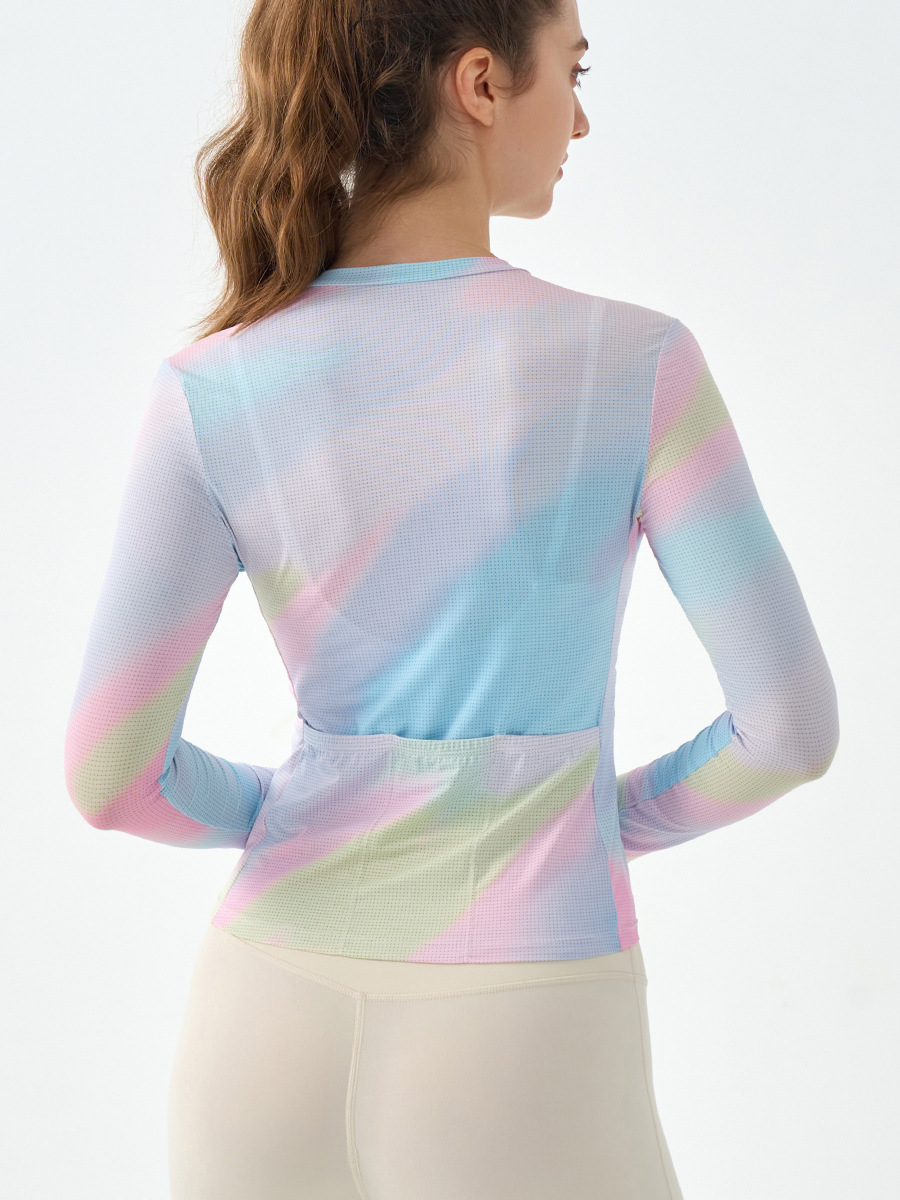 Велосипедный костюм женский летний длинный рукав радуга дофаминовый быстрый сухой спортивный куртка профессиональный дорожный велосипед фитнес-костюм