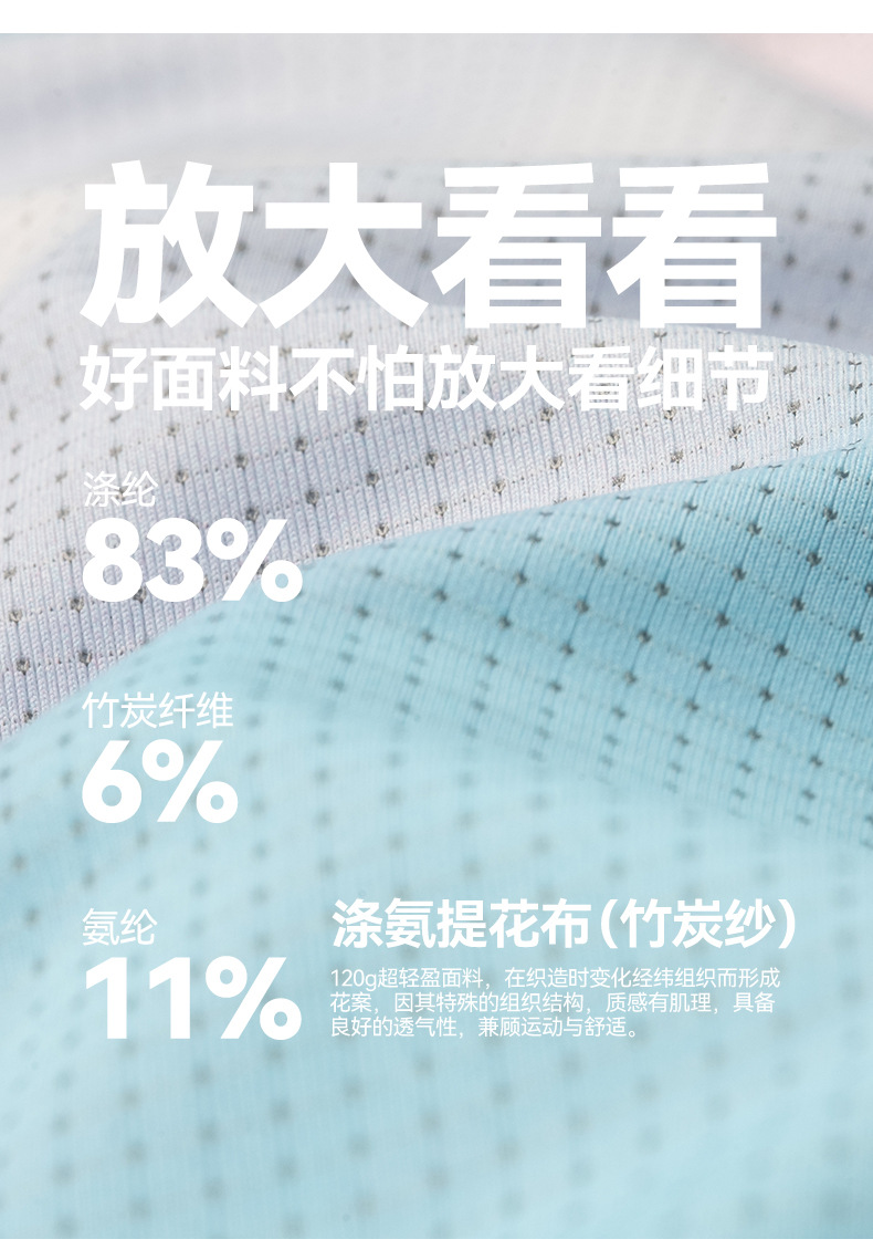 83% полиэстер 6% бамбуковый уголь волокна 11% спандекс