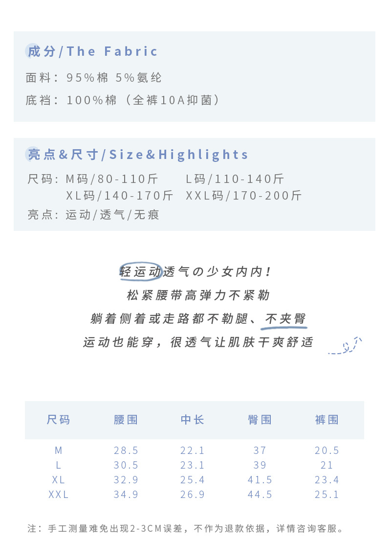 主推3009#专利款大码可穿200斤10A抑菌内裤女纯棉安全中腰平角裤