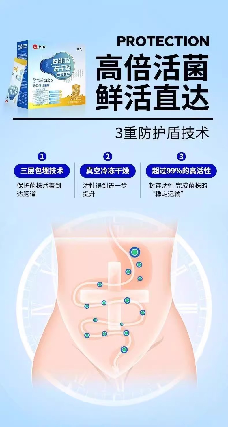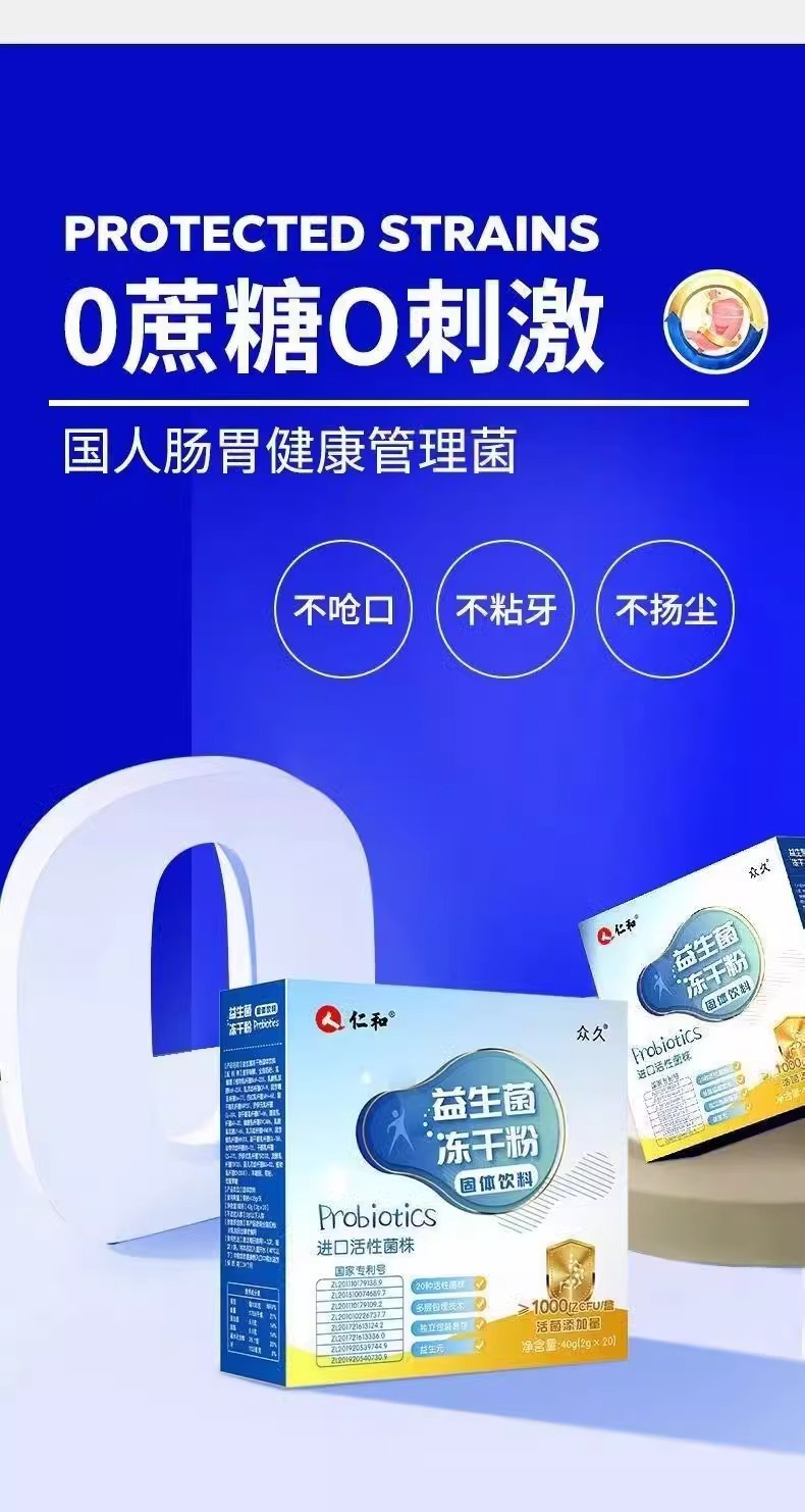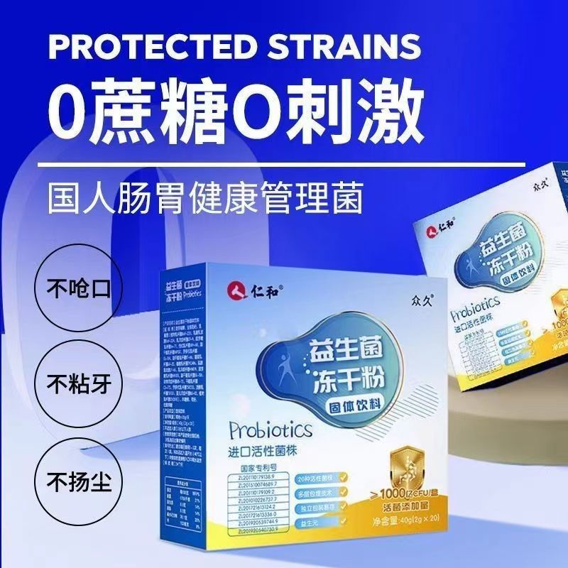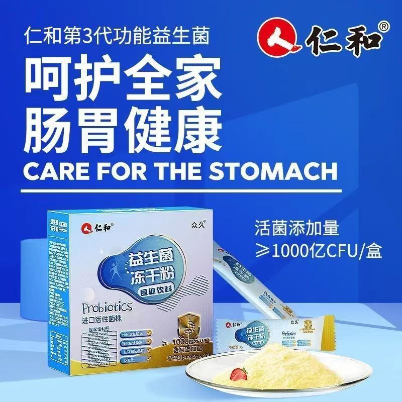 Пробиотический сублимированный порошок Renhe, 20 пакетиков, с пребиотиками для пищеварения, 100 миллиардов КОЕ, оригинальный продукт, дропшиппинг от одной единицы