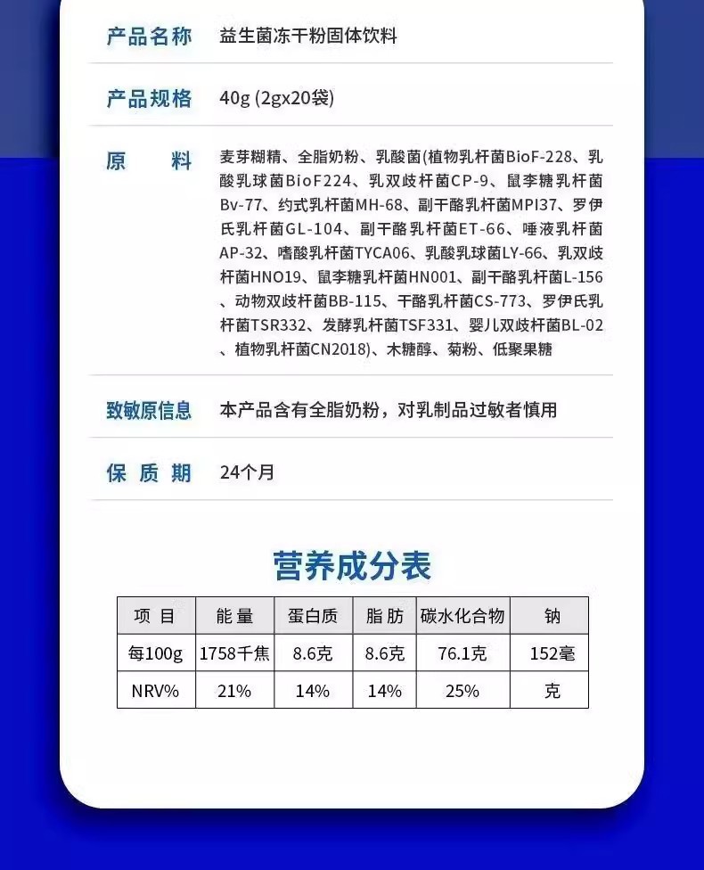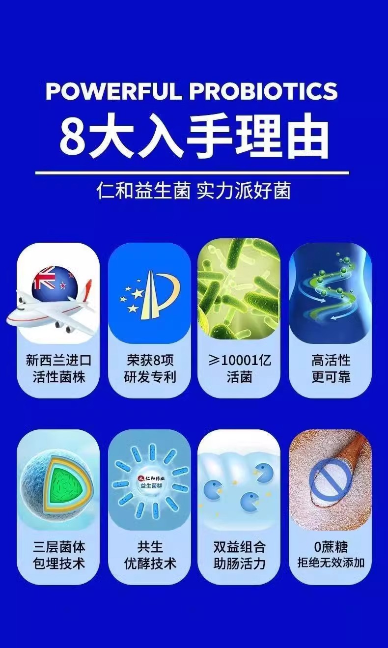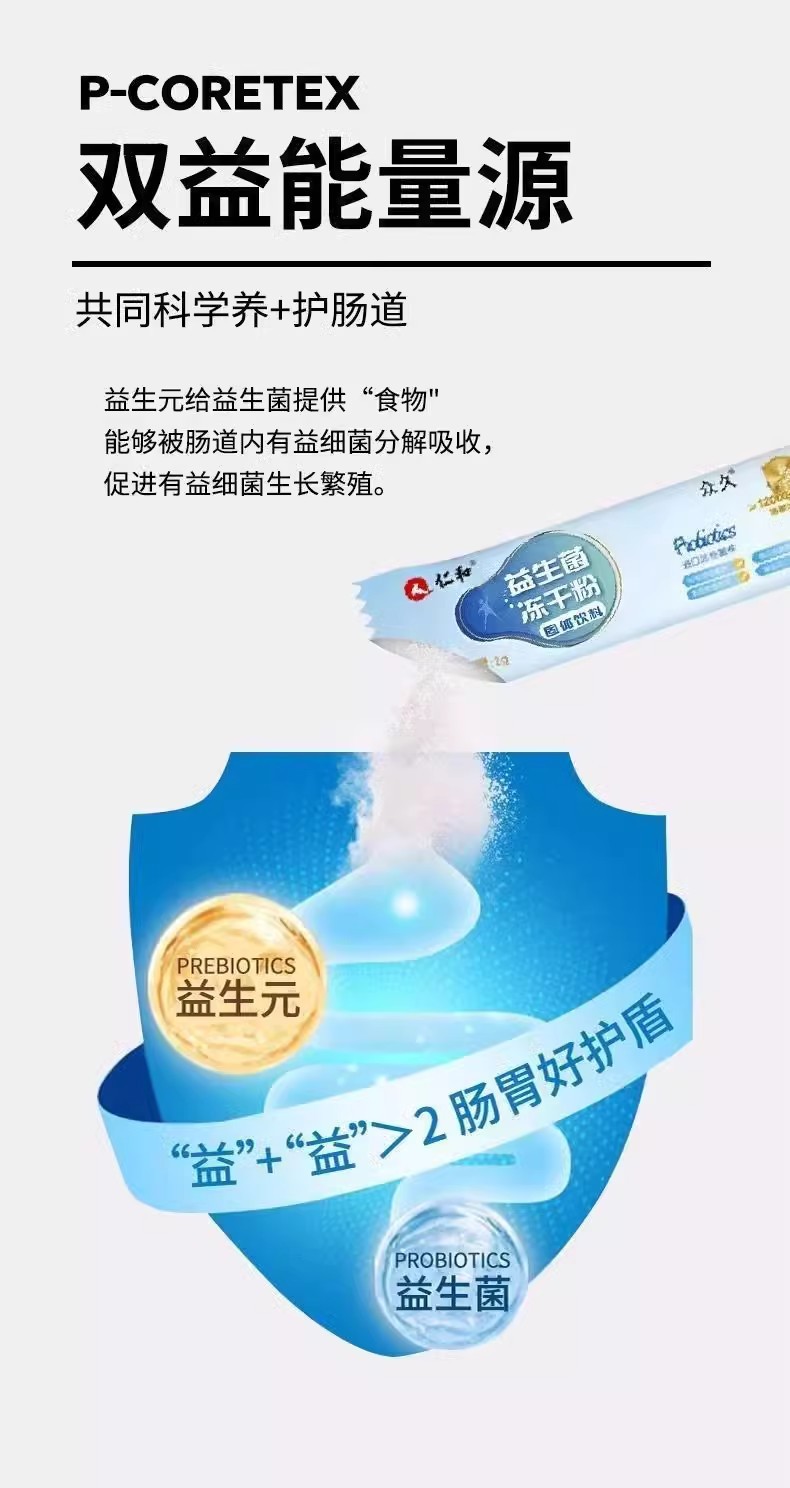 Пробиотический сублимированный порошок Renhe, 20 пакетиков, с пребиотиками для пищеварения, 100 миллиардов КОЕ, оригинальный продукт, дропшиппинг от одной единицы