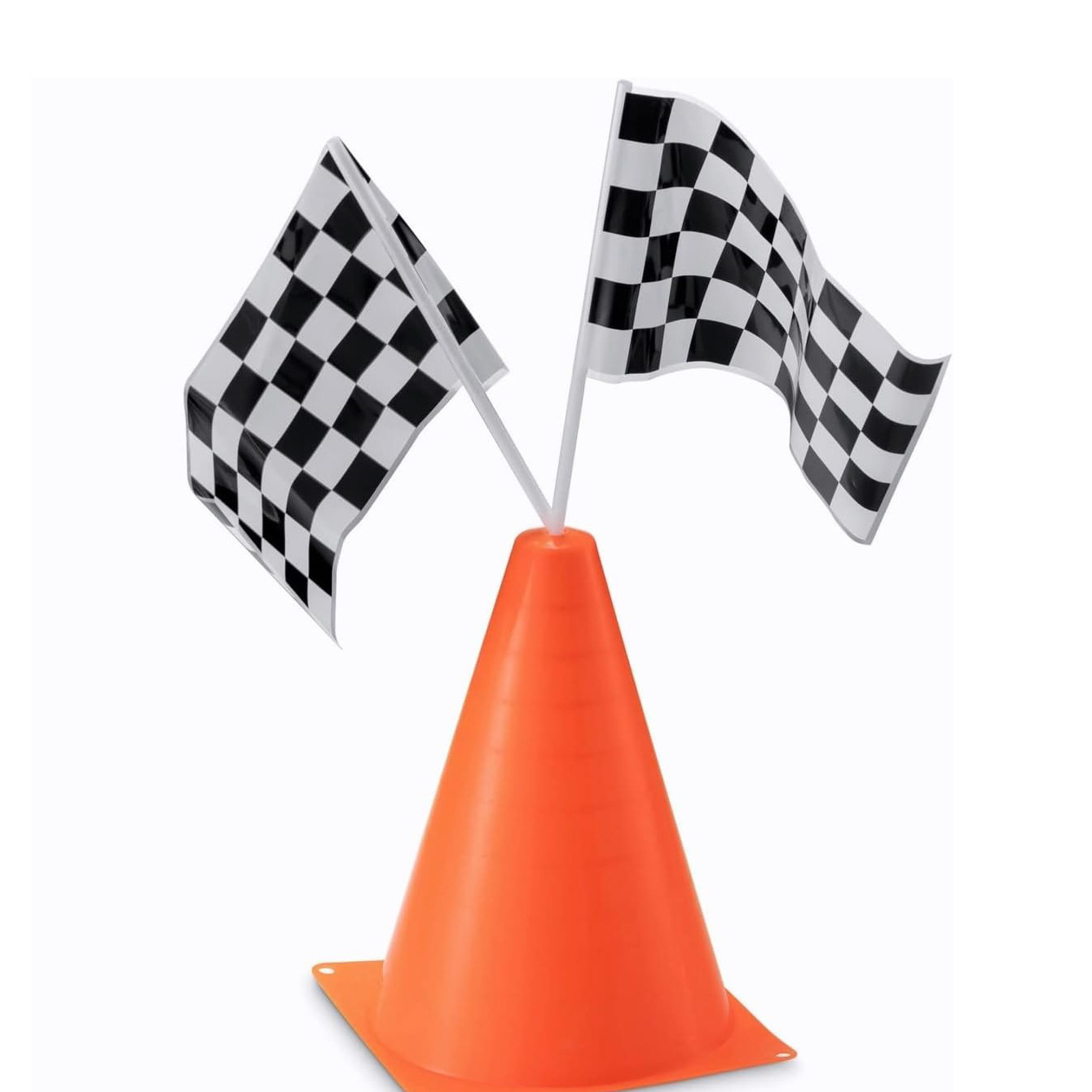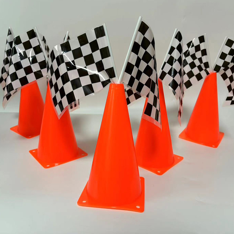 男孩派对用品跨境黑白格F1赛车手摇旗子 18CM冲孔路障标志锥路锥