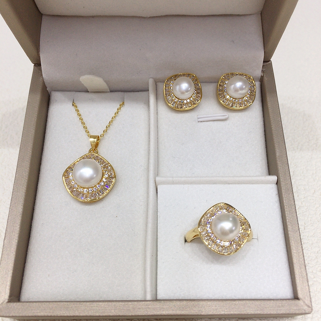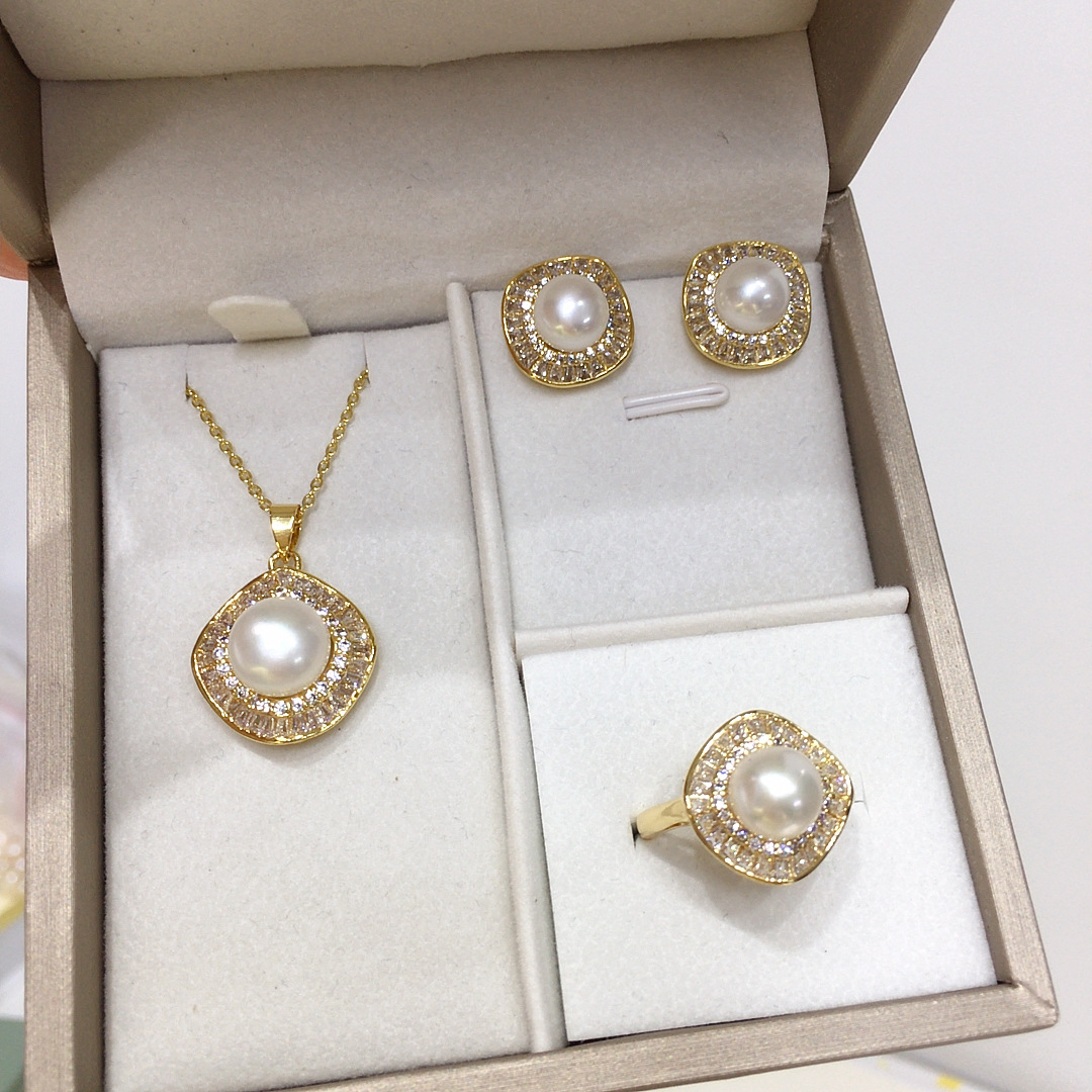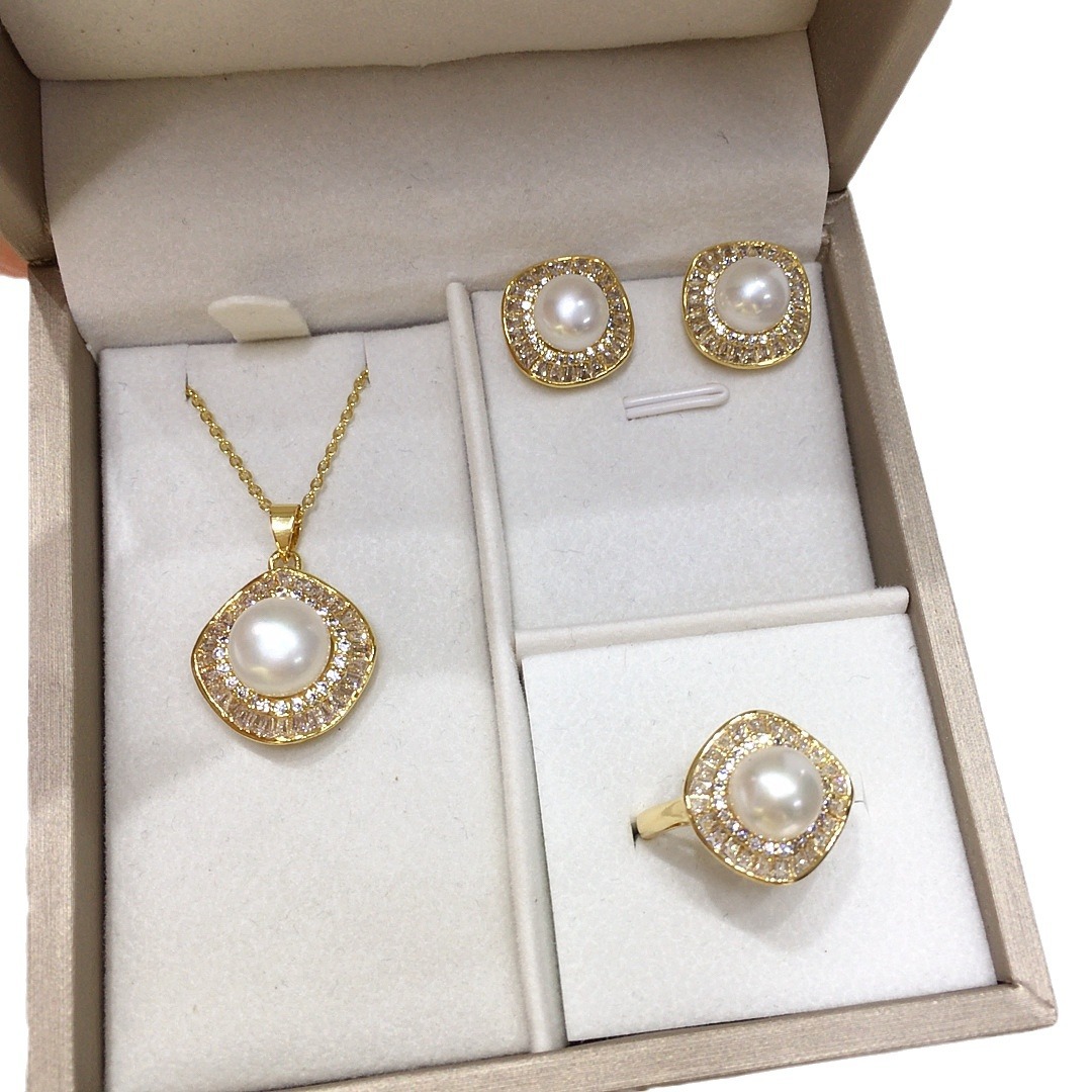 5A класс натуральная пресноводная жемчужная подвеска серьги кольцо легкий экстравагантный микроинкрустированный квадратный циркон жемчуг набор оптом