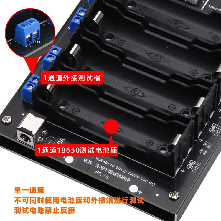 外接测试:支持,可通过2P端子外接放电,单一通道单次仅且只能支持电池座或外接测试中的一种,不能同时使用电池座和外接电池进行测试。