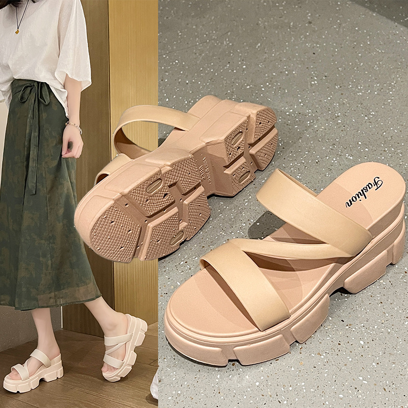 Холодные тапочки на высоком каблуке женские толстые летние кексы и фреймы
