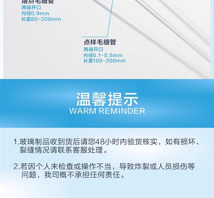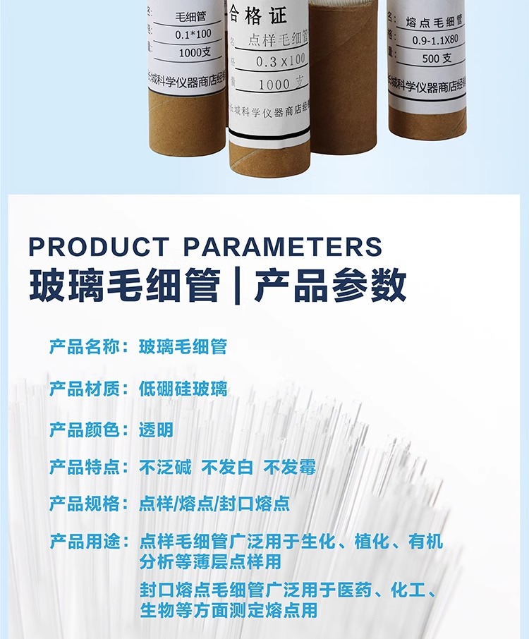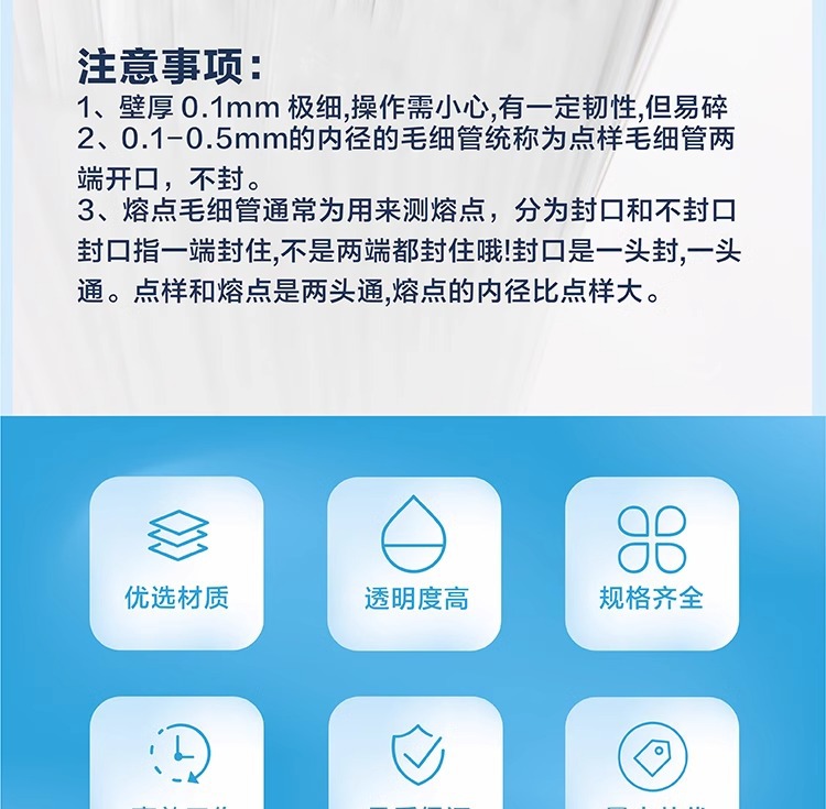 Высокотемпературная капиллярная трубка из органического стекла с высоким содержанием боросиликатов для лабораторного использования, герметичная капиллярная трубка для точного определения температуры плавления, устойчивая к высоким температурам.