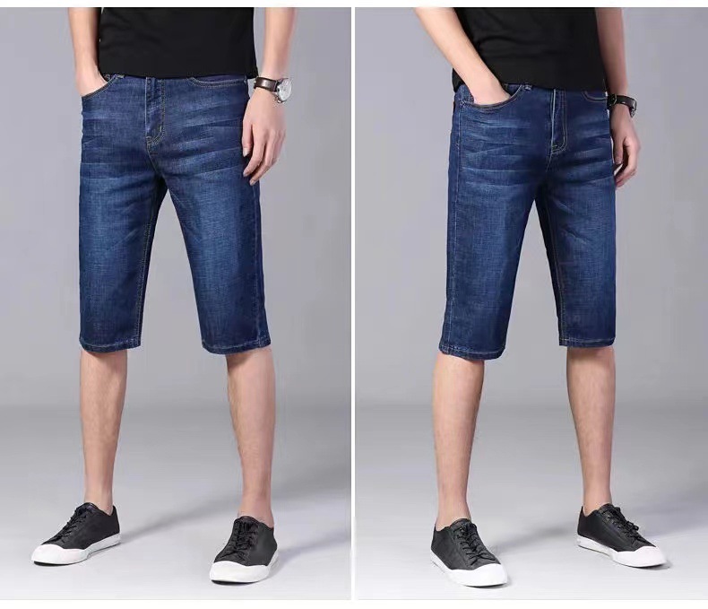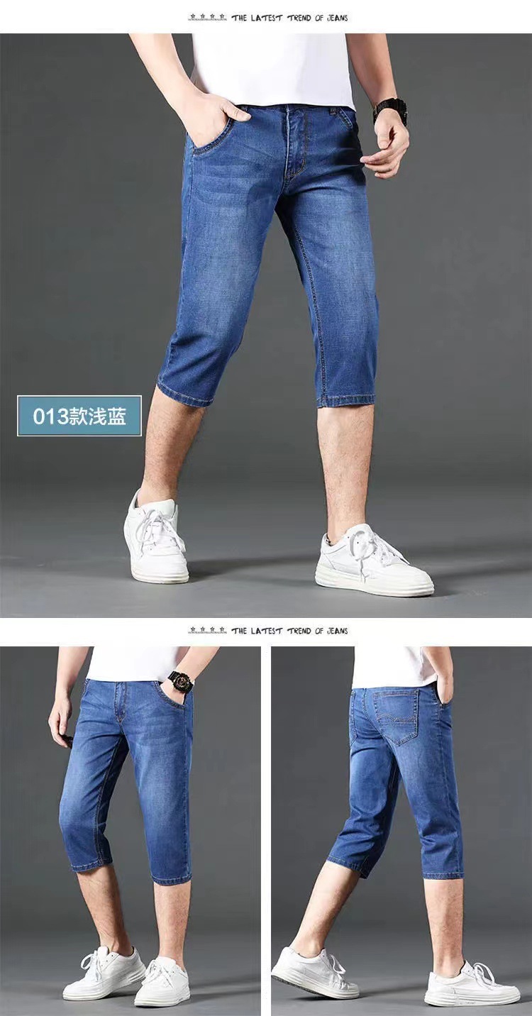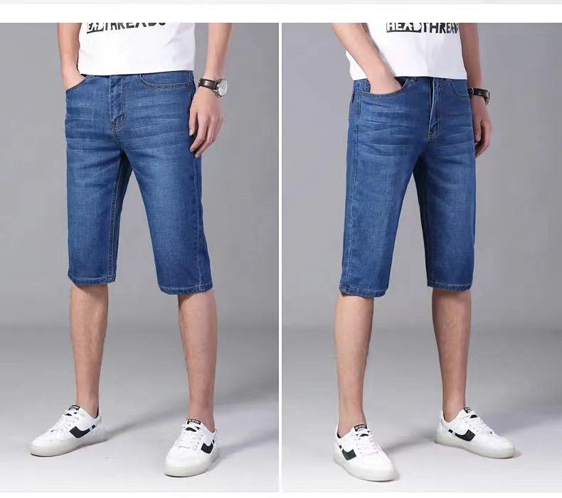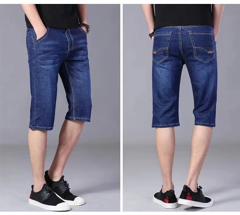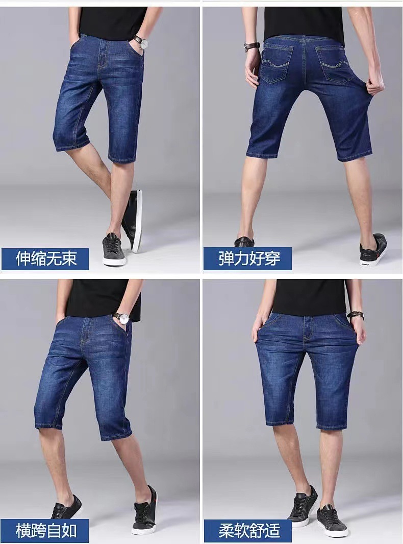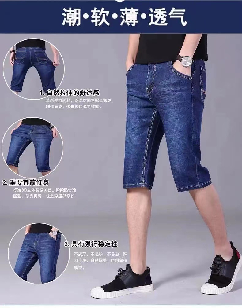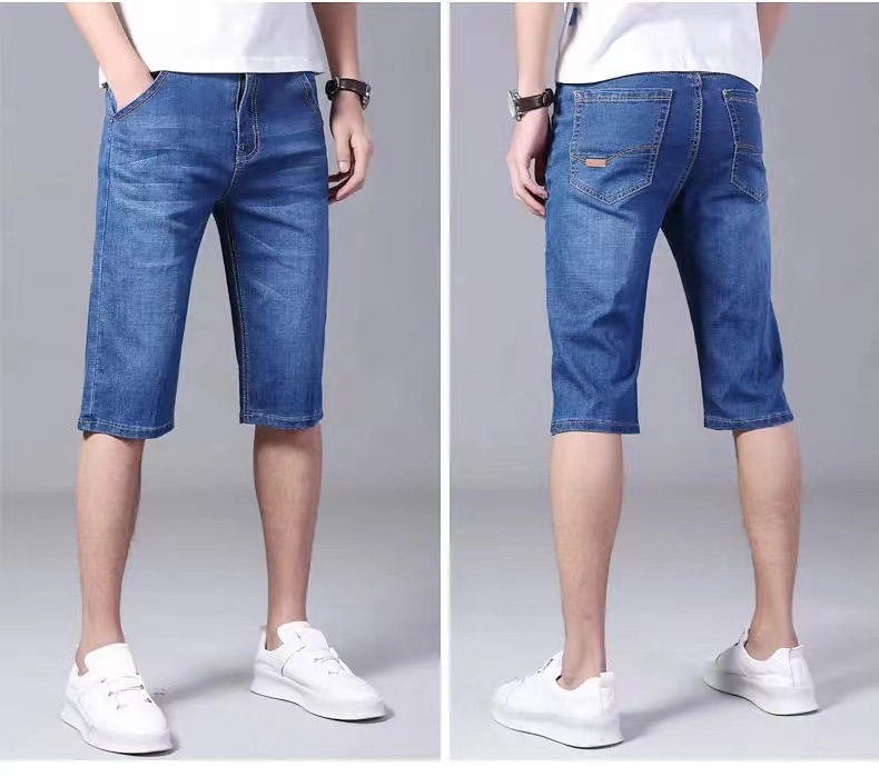 Летние тонкие джинсы шорты мужские укороченные брюки прямые эластичные работы износостойкие 5 очков брюки на строительной площадке