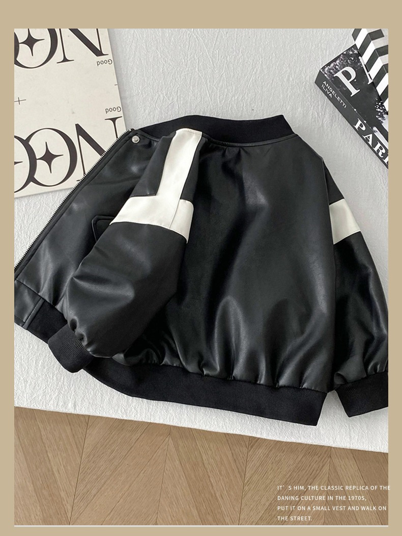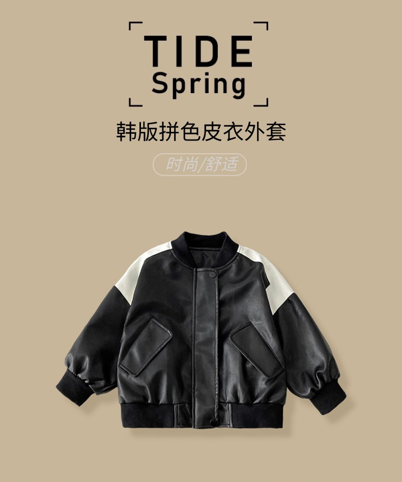 Детская кожаная куртка в корейском стиле, весна 2026, новая крутая куртка для мальчиков, детский топ из искусственной кожи с лоскутным дизайном