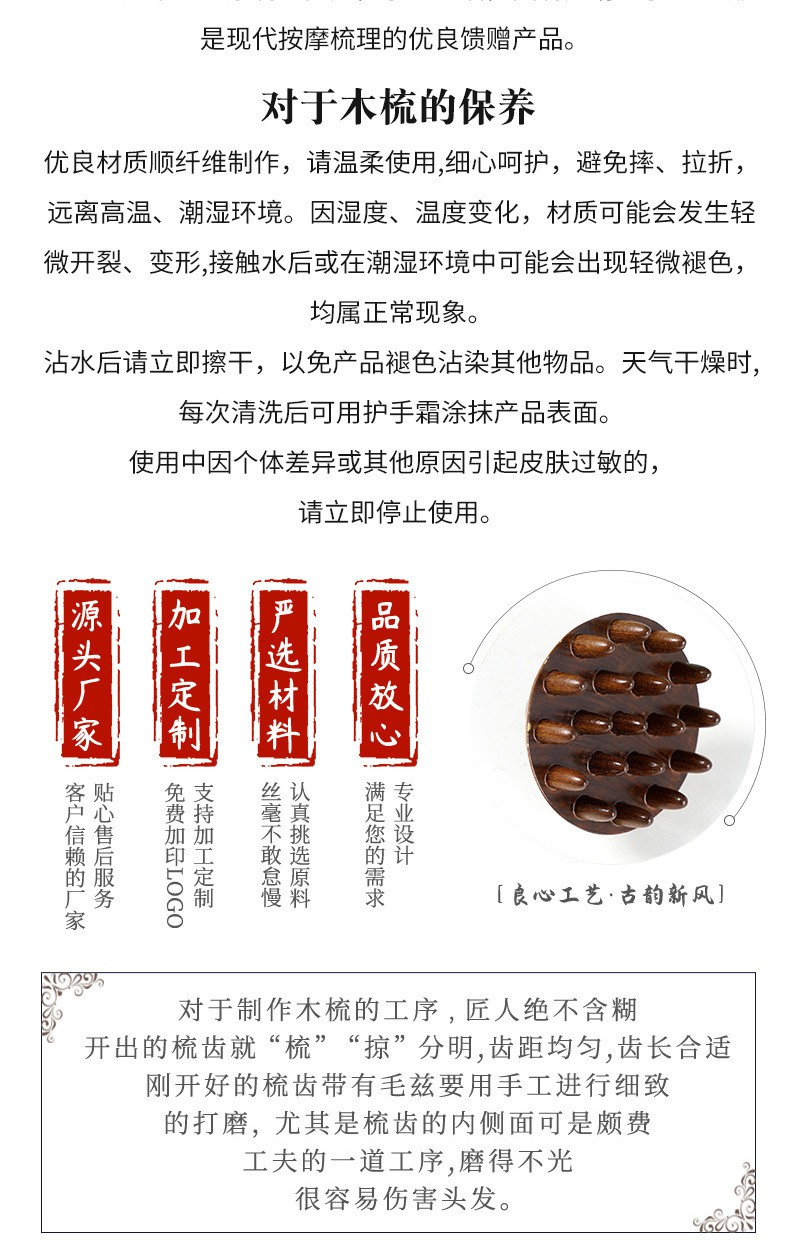 Оптовые продажи массажных расчесок из сандалового дерева, деревянные расчески для массажа меридианов головы, прямые поставки от производителя.