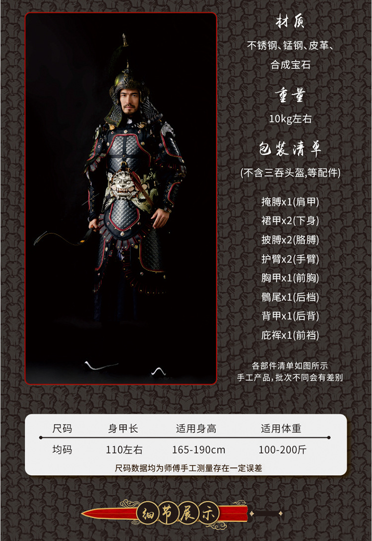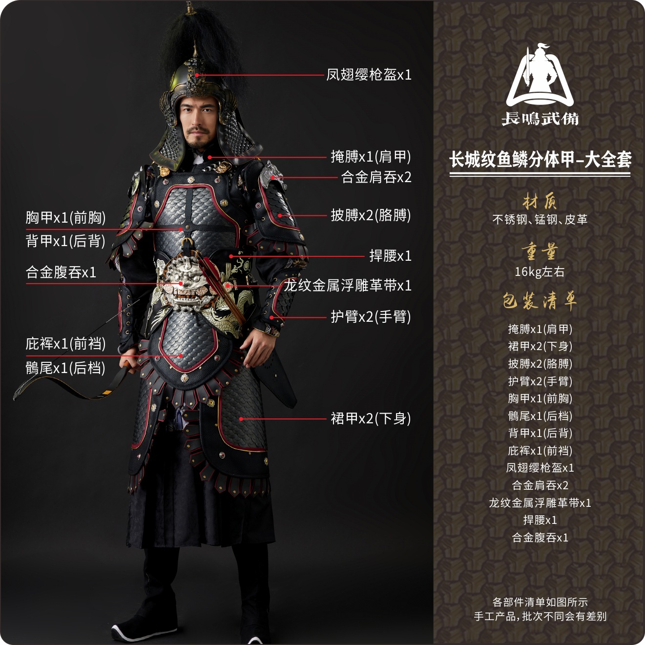 Оригинальная доспехи-«рыбья чешуя» в стиле «Великая стена», новая китайская доспехи в стиле «генерал», прочные доспехи в стиле династий Тан и Мин.