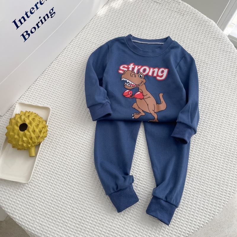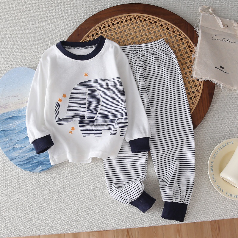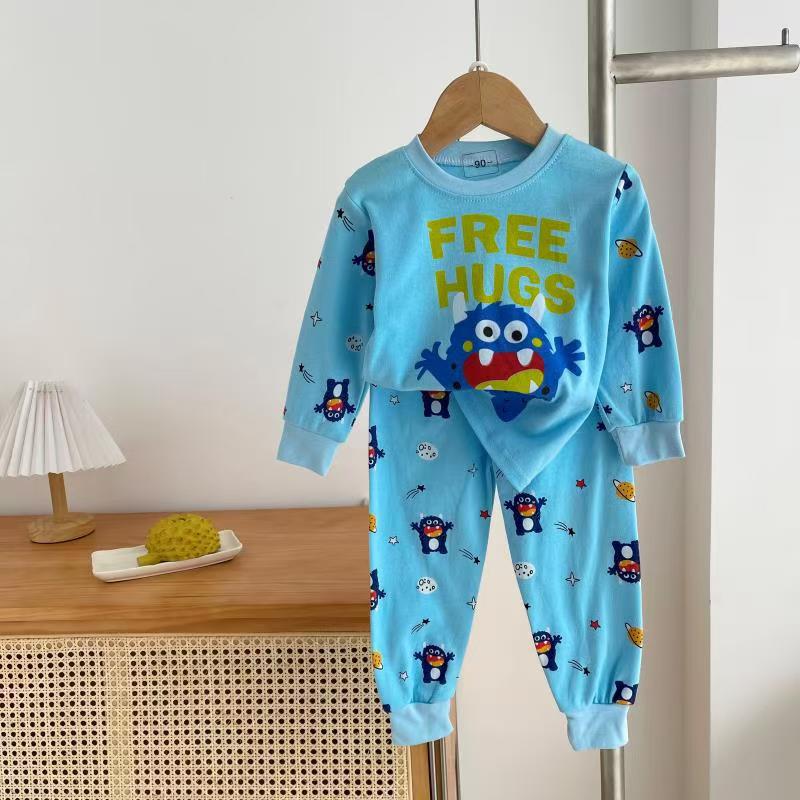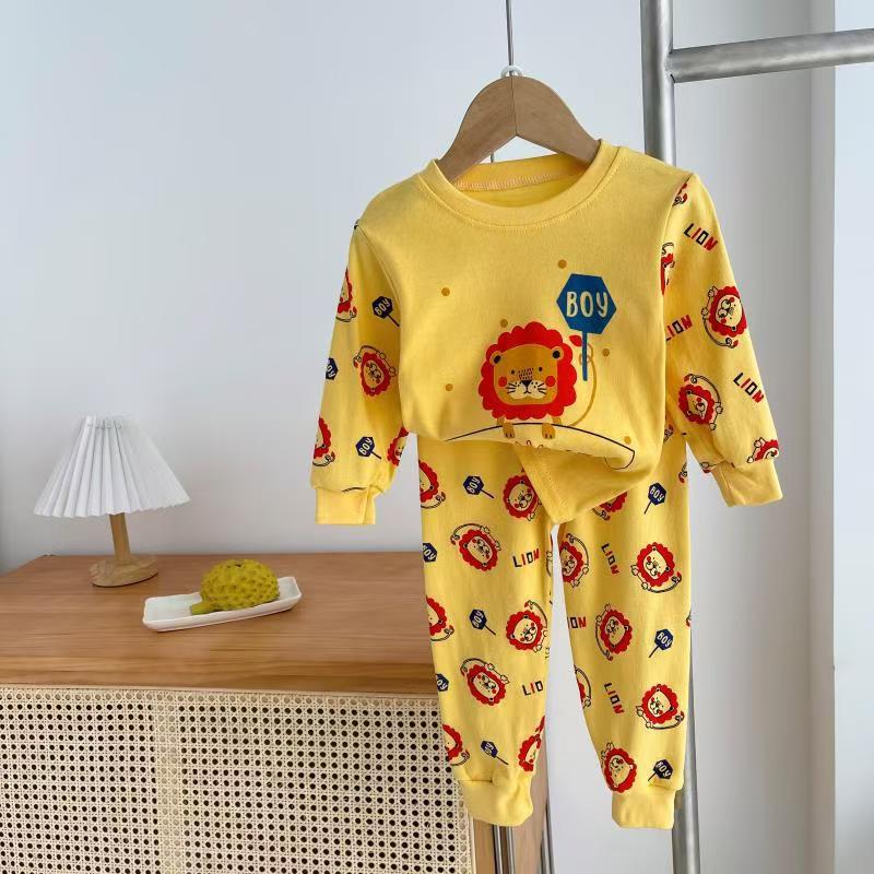 Детский домашний костюм из чистого хлопка с длинным рукавом и длинными брюками, осенний, 2025, с мультяшным аниме-принтом, повседневный комплект для малышей