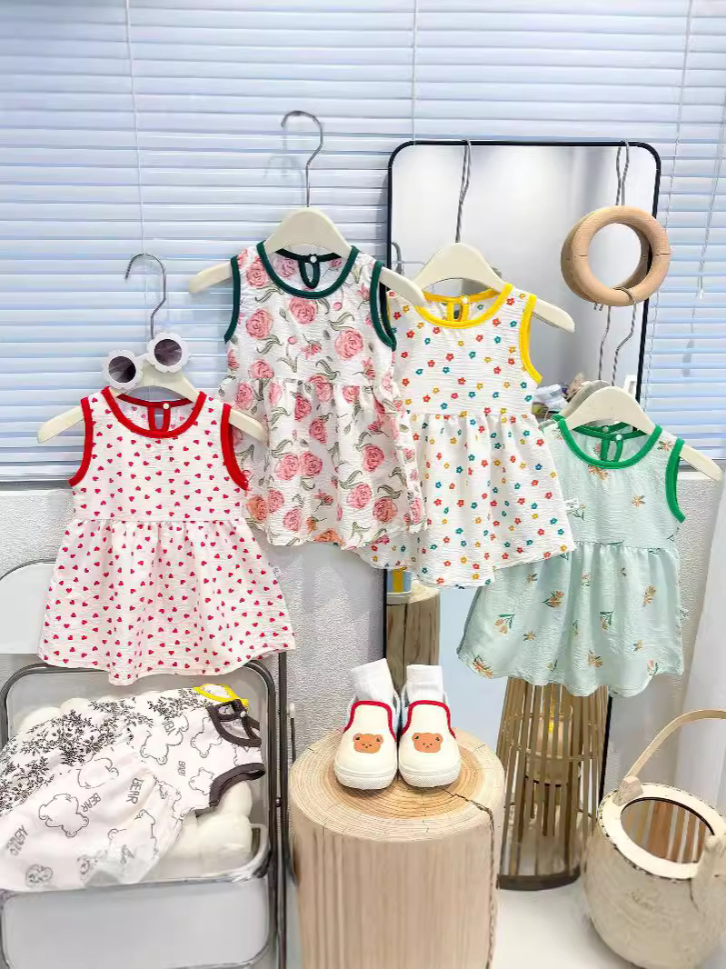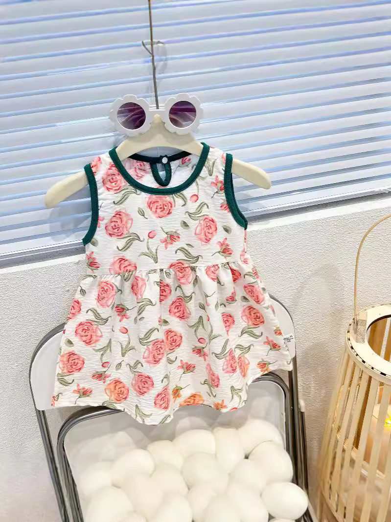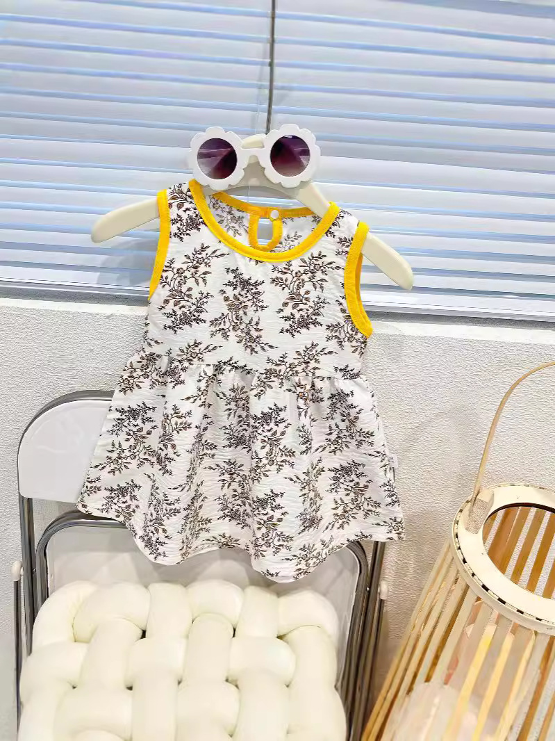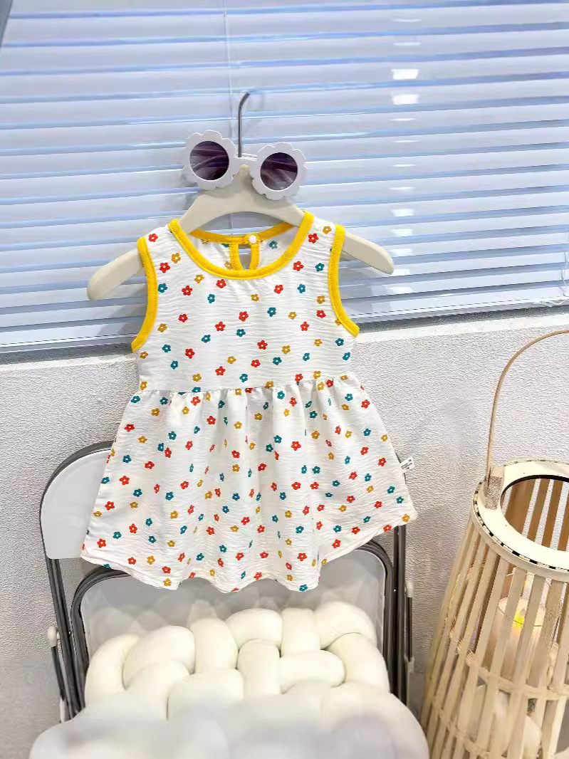 Новинка 2024 года, майка для маленьких девочек, повседневная юбка на подтяжках, детское платье с цветочным принтом, корейское платье принцессы для маленьких девочек