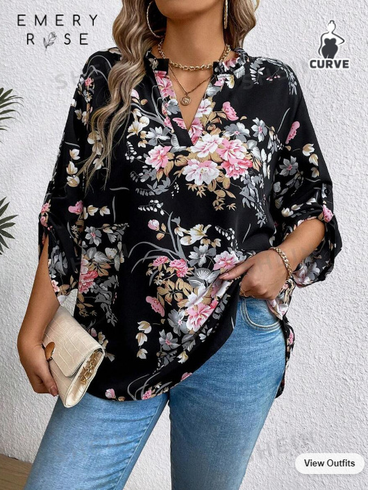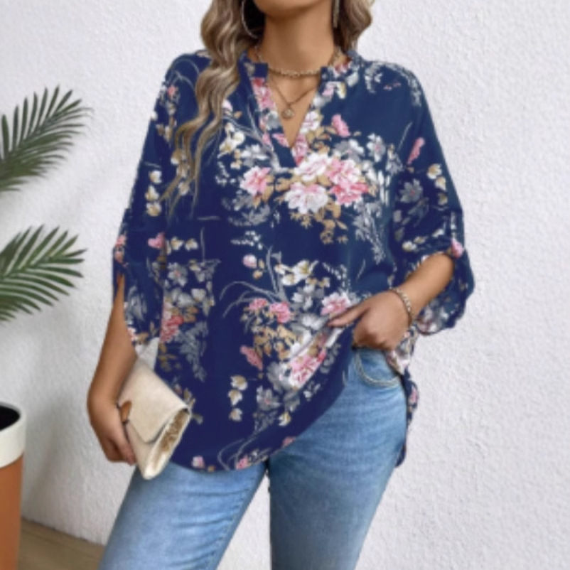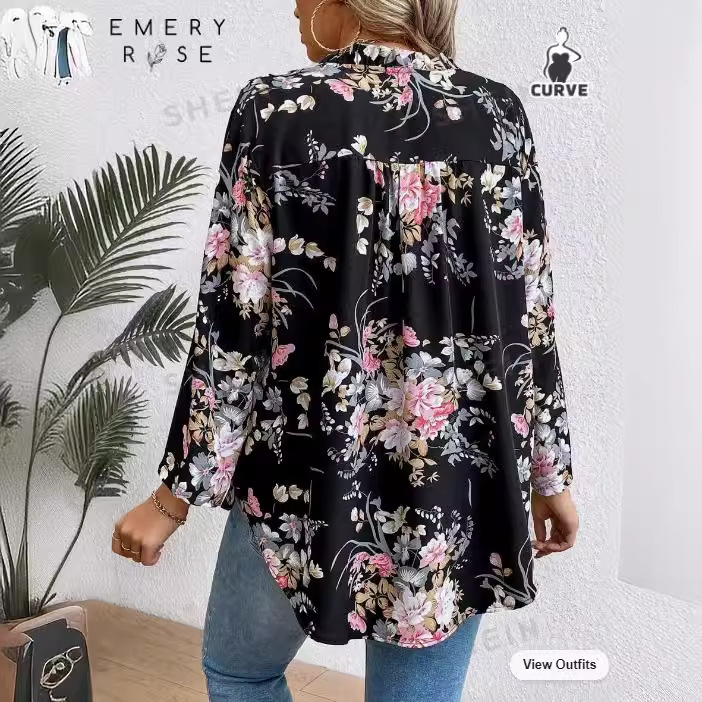 Трансграничные новые европейские и американские женские платья Amazon независимые станции больших размеров цветочный принт с длинными рукавами плиссированный женский свободный топ