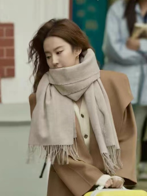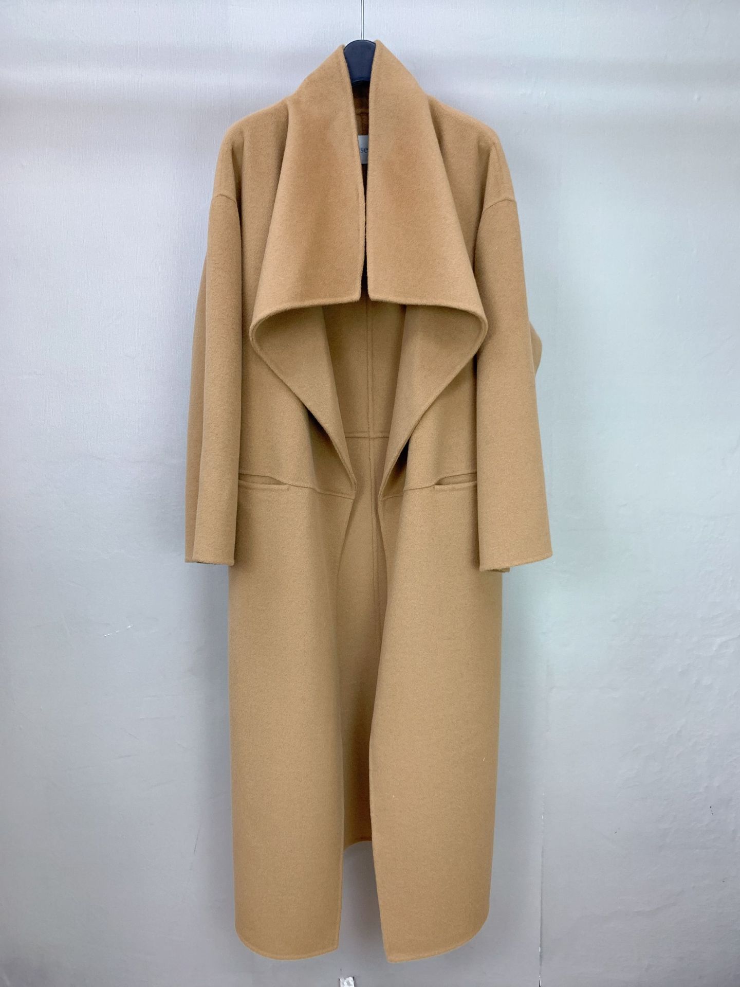 Кашемировое пальто в стиле знаменитостей, осенне-зимнее, свободного кроя, с отложным воротником, двустороннее, из кашемира и шерсти, для женщин