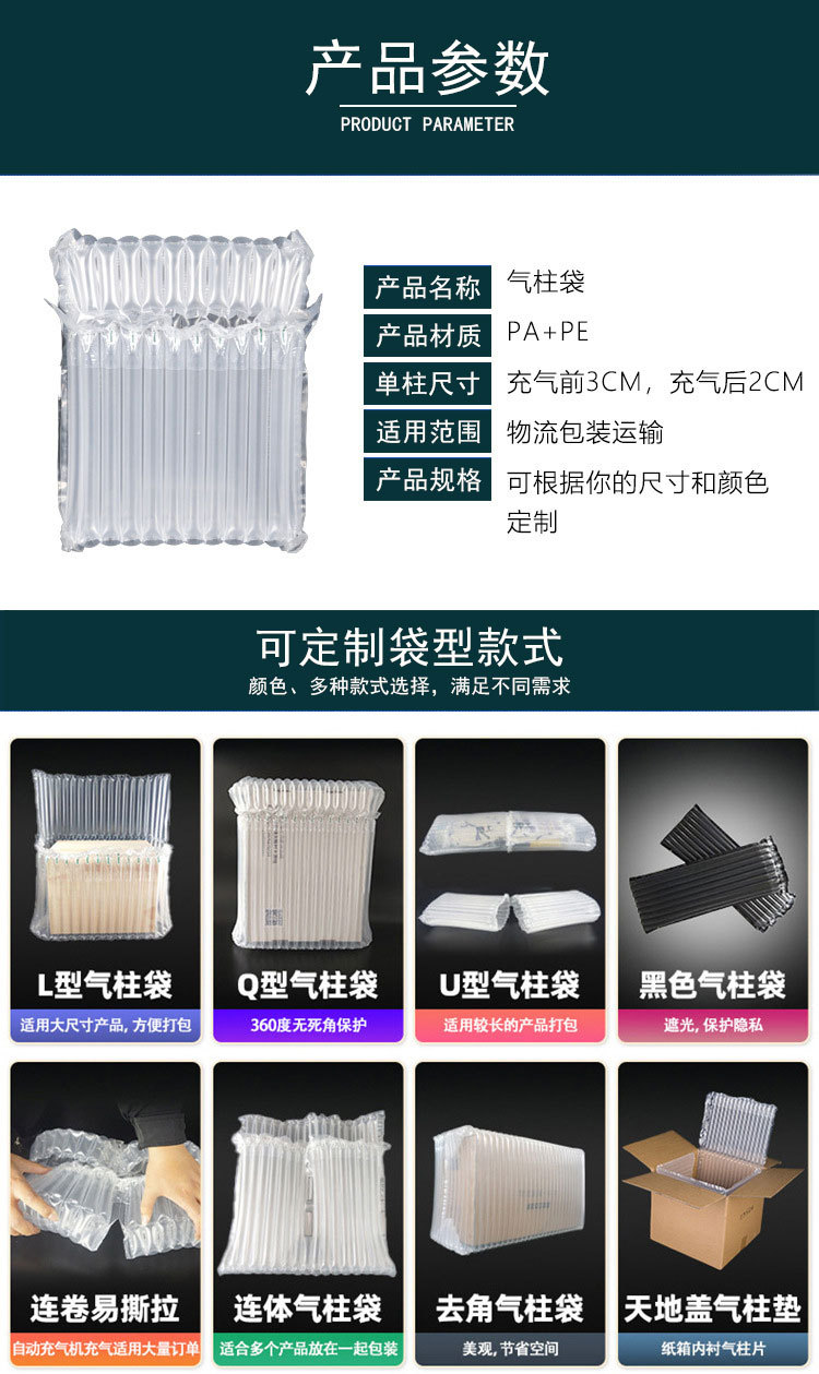 蜂蜜防震充气袋防压防摔礼盒气柱袋缓冲防撞打包气泡柱袋快递专用