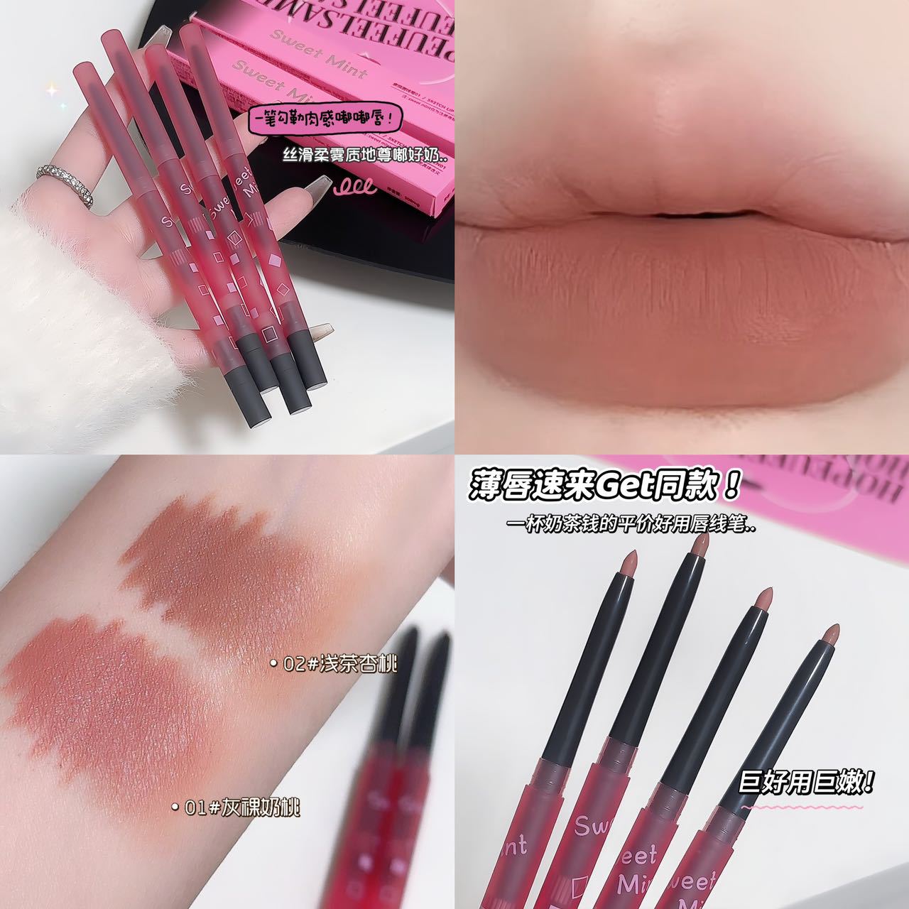 Набросок для губ sweetmint очерчивает губы, полные губы и губы естественно окрашенные матовые помады для губ