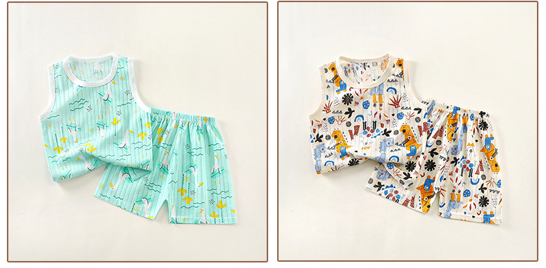 Детские летние жаккардовые хлопчатобумажные шорты набор новых мужчин и женщин без рукавов мультфильм дышащая детская одежда