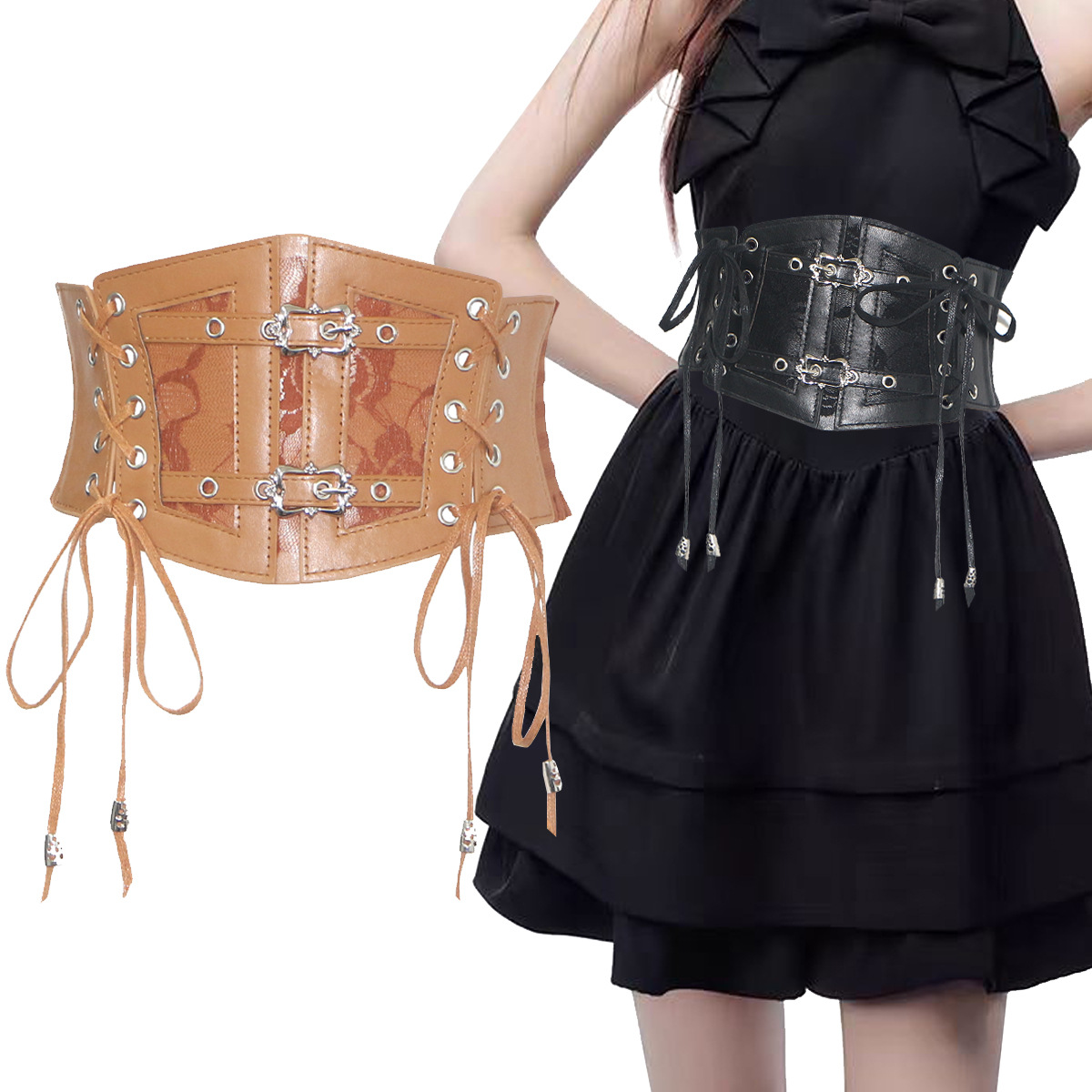 Европейские и американские ретро черные кружевные ремешки для талии для женщин модные наружные украшения эластичный пояс большой размер широкий пояс для женщин