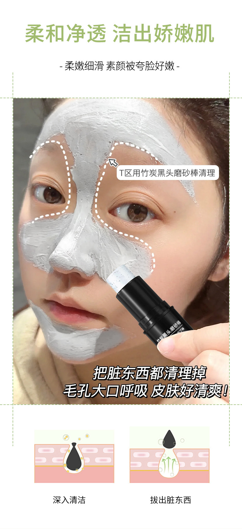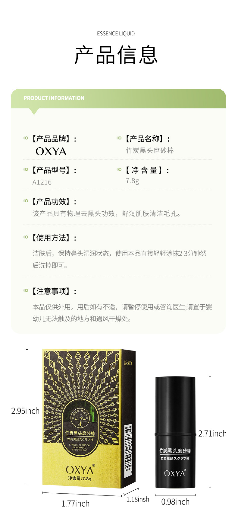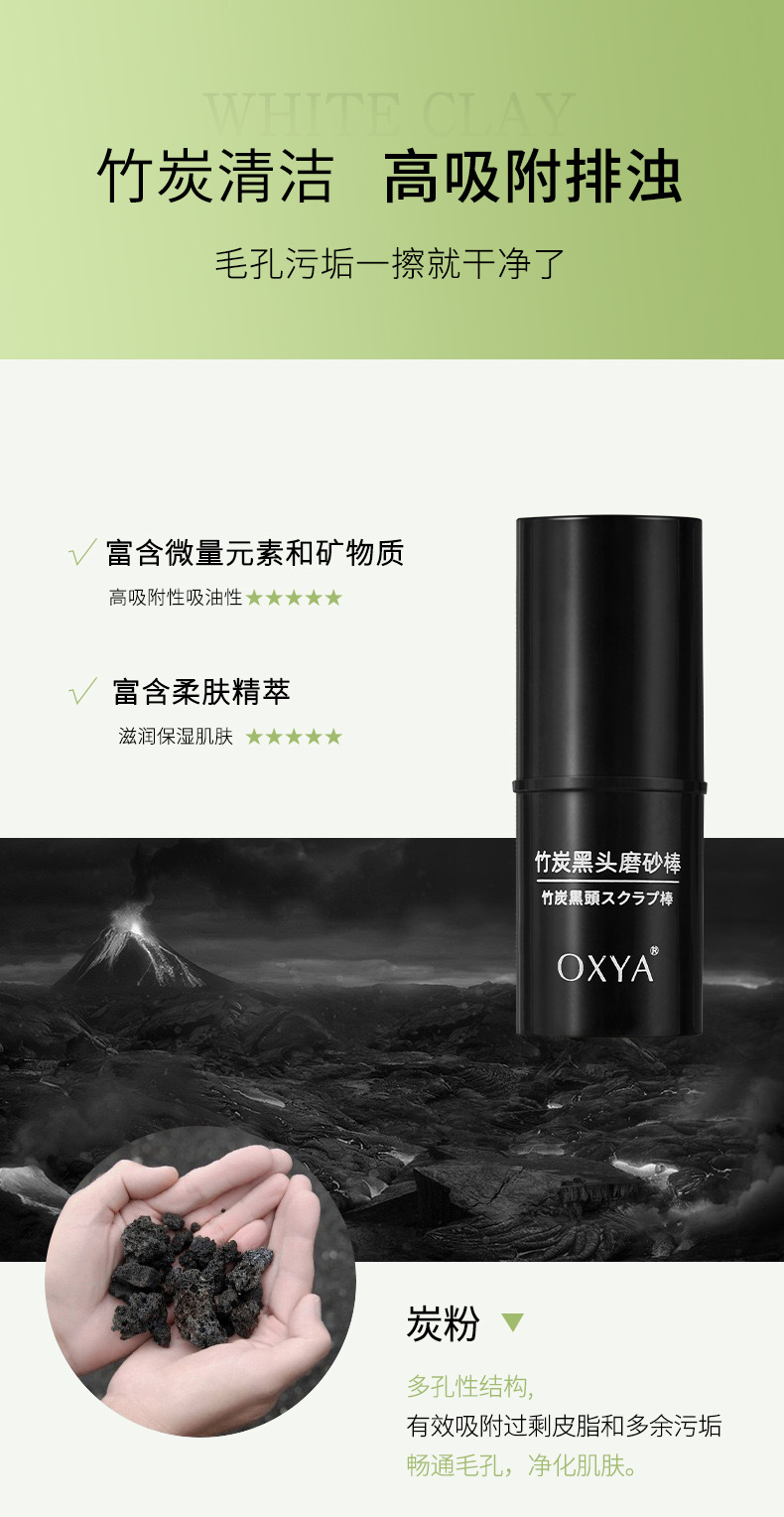 OXYA бамбуковый древесный уголь черноголовой шлифовальный стержень для очистки пор угри белые угри улучшают тусклое масло освежает и удалает угри