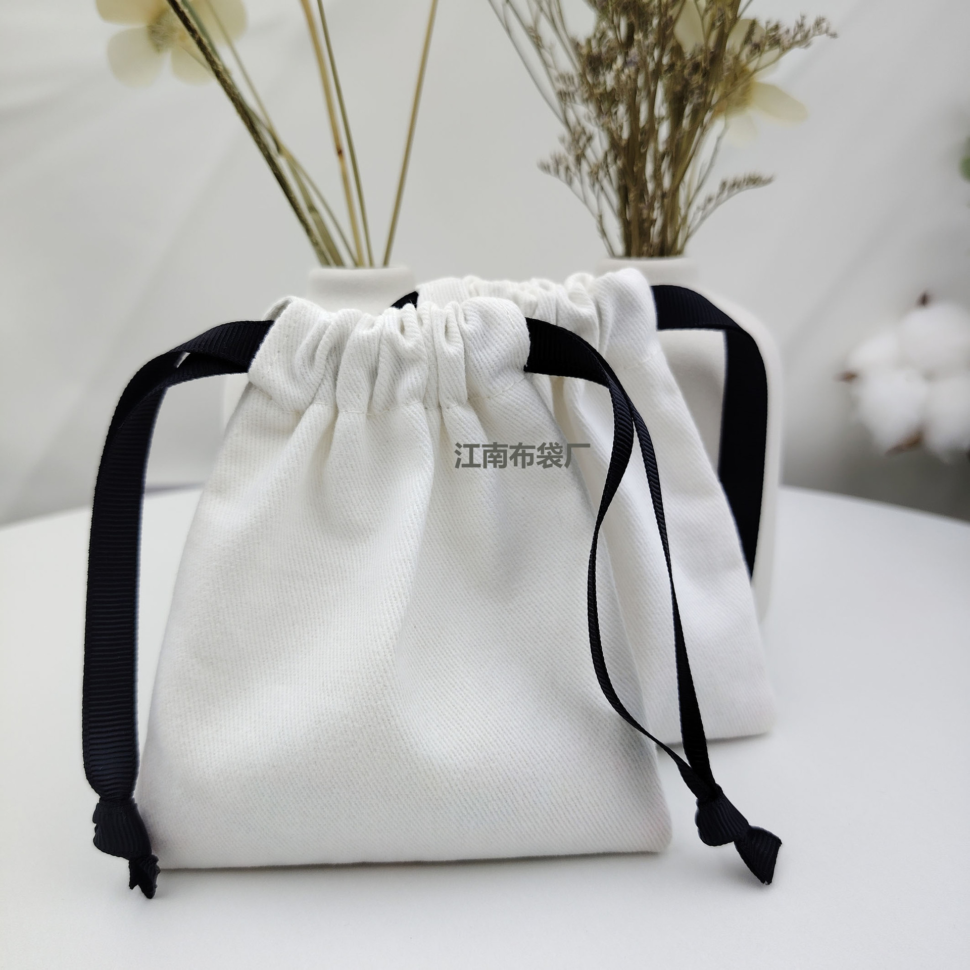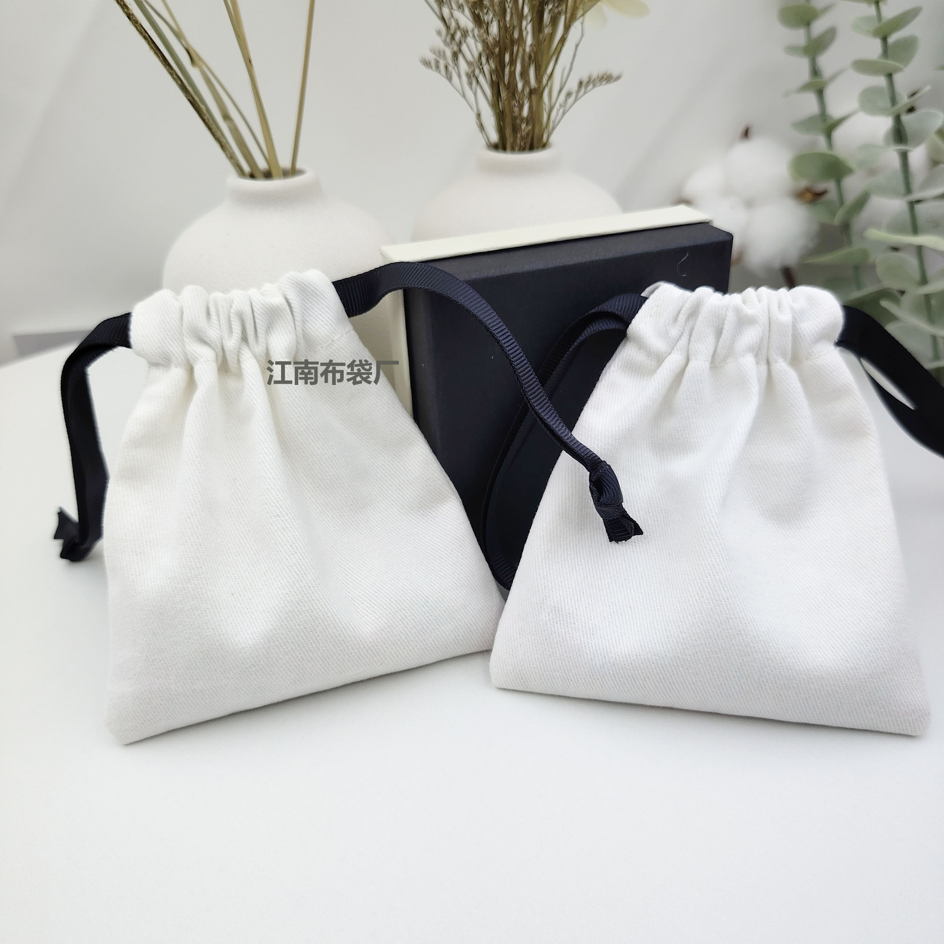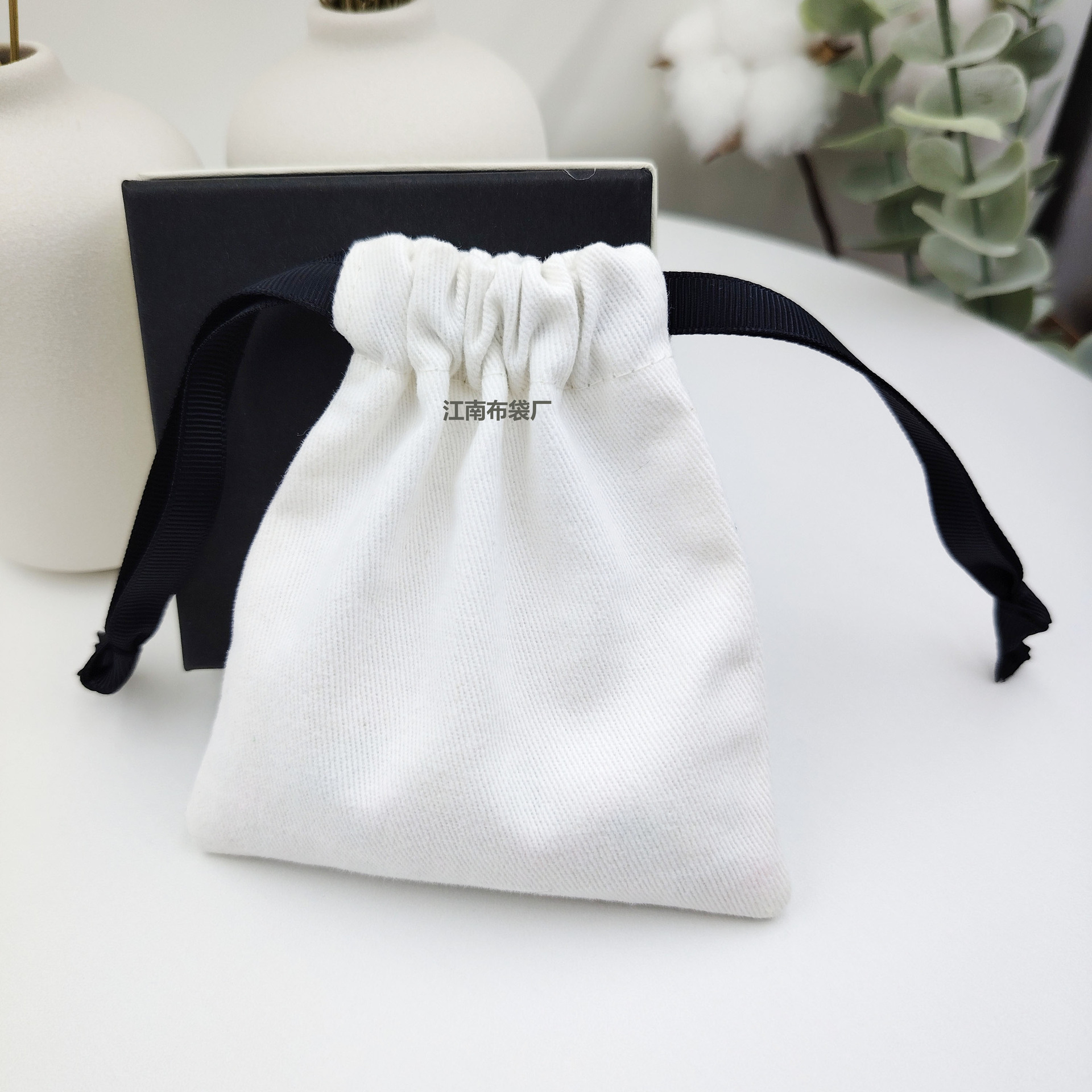 Белый холщовый мешочек на шнурке для упаковки мелких украшений, маленький хлопково-льняной мешочек на шнурке с нанесением логотипа