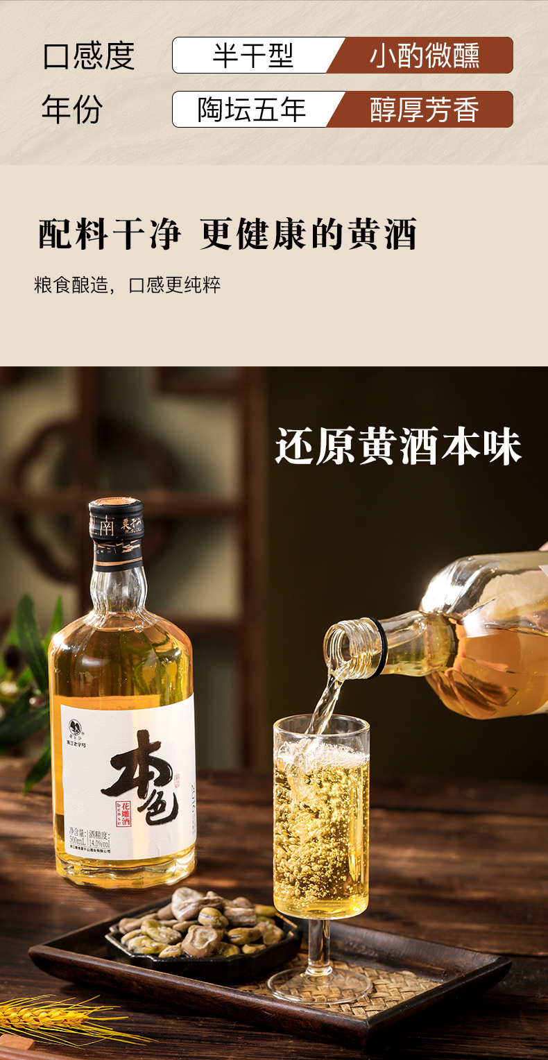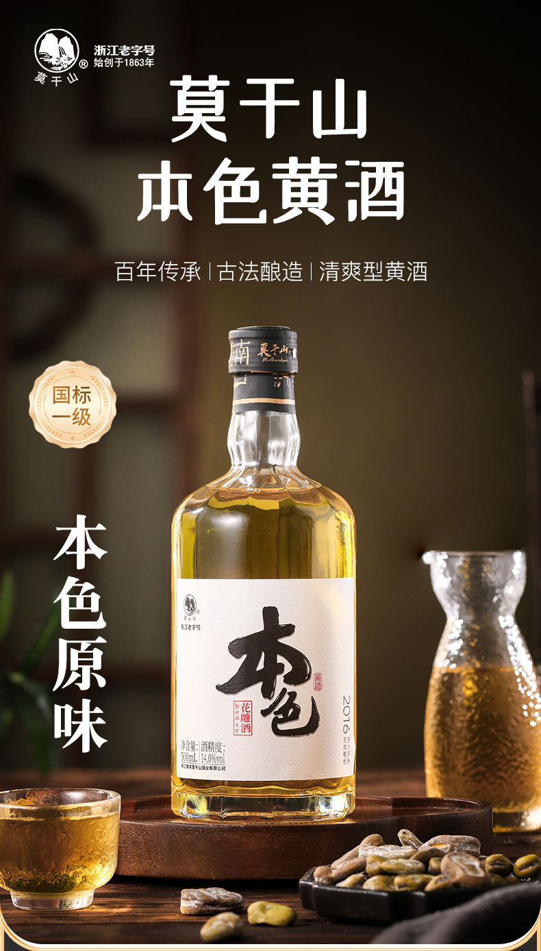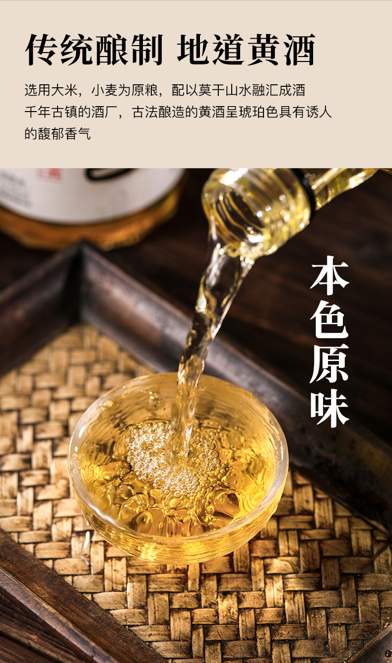 Вино Моганшань первого сорта, натуральное желтое, зимнего брожения, оригинальная сусло, 14 градусов, без карамельного цвета, вино Хуадяо, выдержанный и ароматный, упакованное в бутылки старое вино.