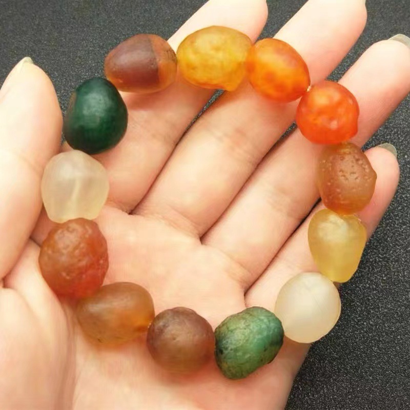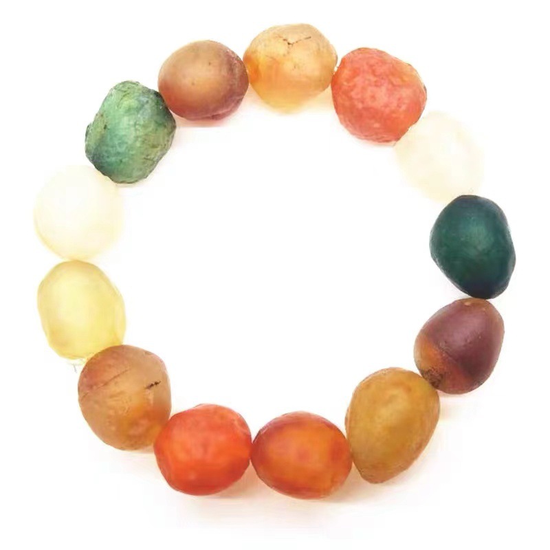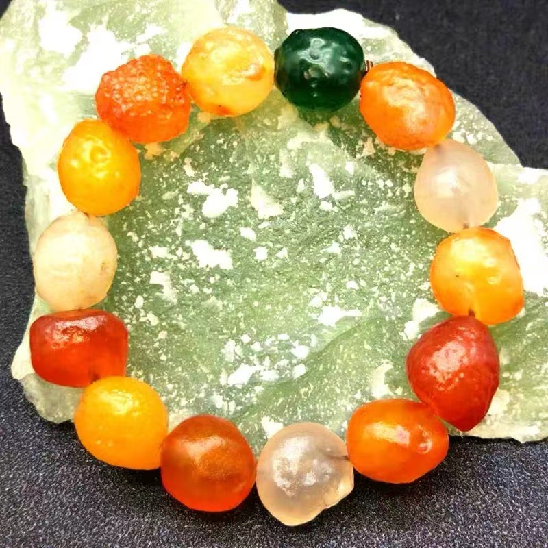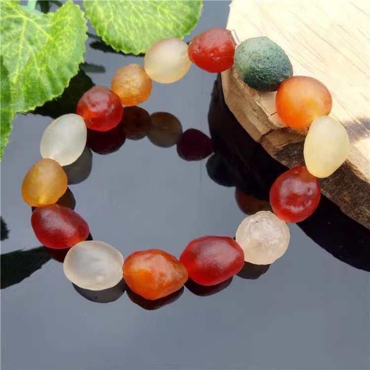 Браслет из агата Альхасе, браслет из необработанного камня Гоби, разноцветные бусины, уникальный каменный браслет, разноцветный эластичный шнур, красный агат.