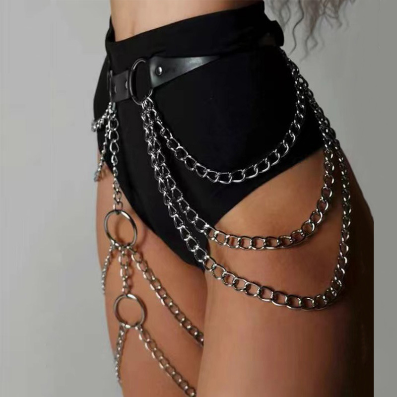 Трансграничная взрывная талия и ноги сексуальная преувеличенная поясная цепь кожаная цепь ножка кольцо многослойные кисточки ювелирные аксессуары