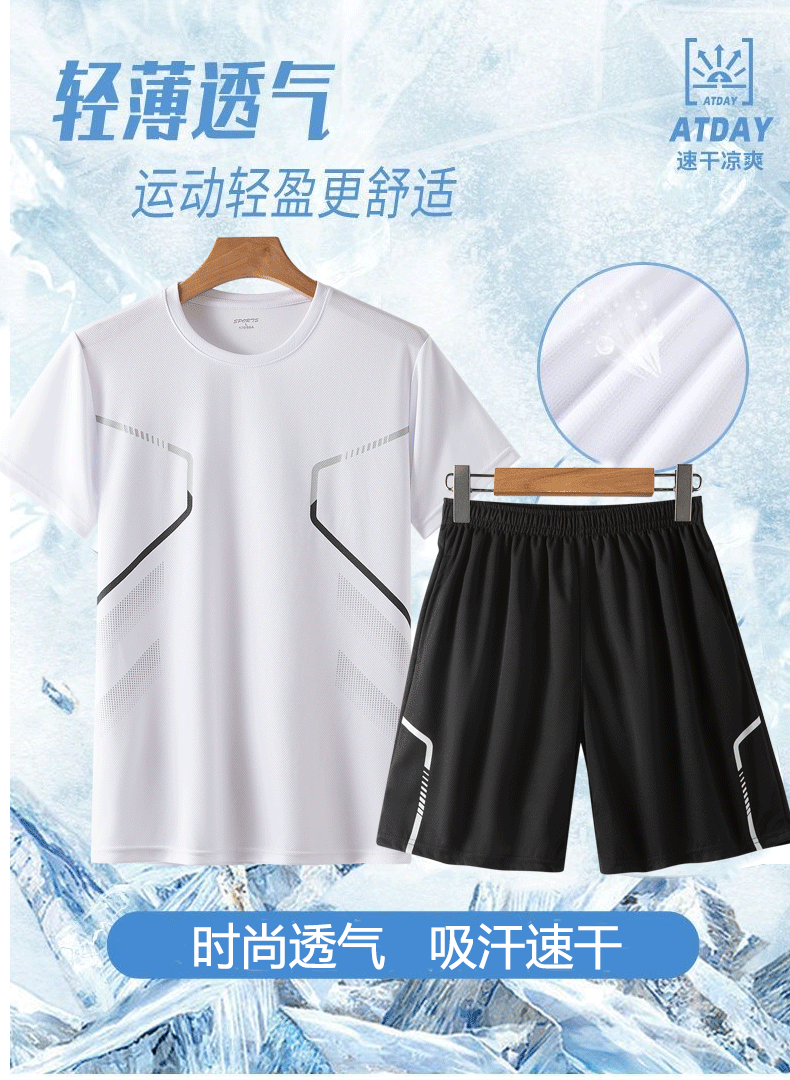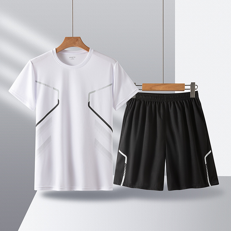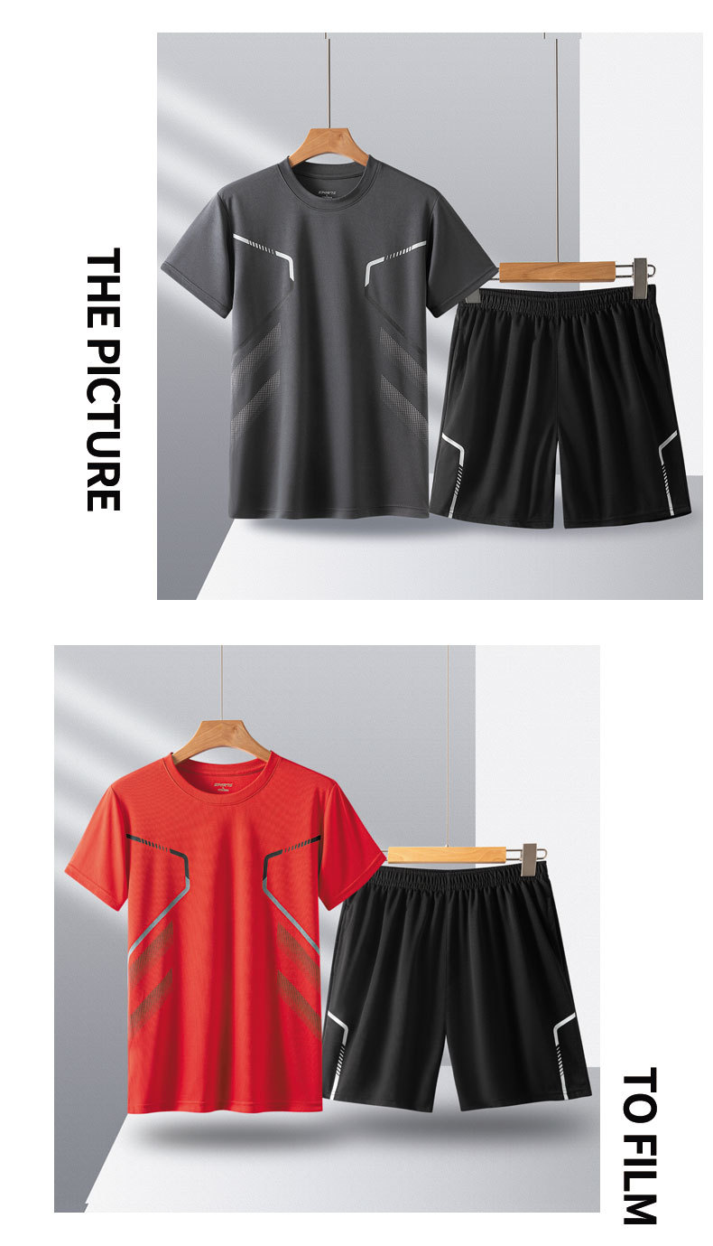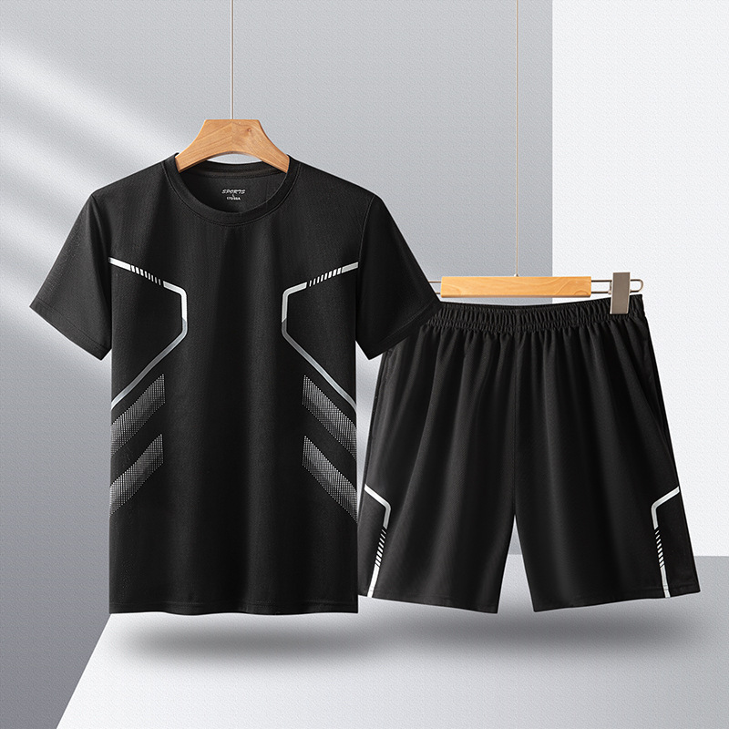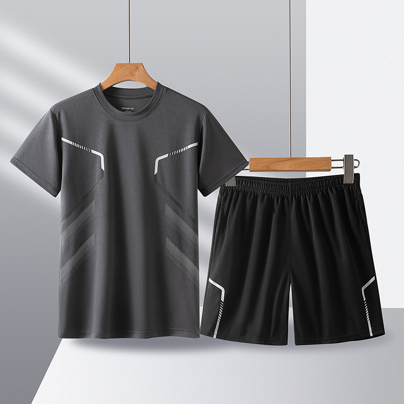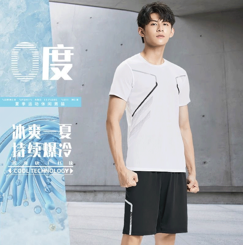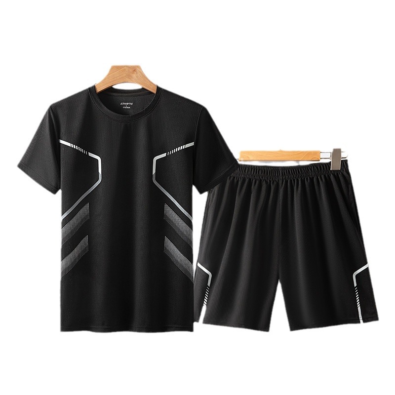 Прохладный спортивный набор мужской беговой быстрый сухой костюм Летние шорты с короткими рукавами ледяной шелк мужская футболка повседневная спортивная одежда