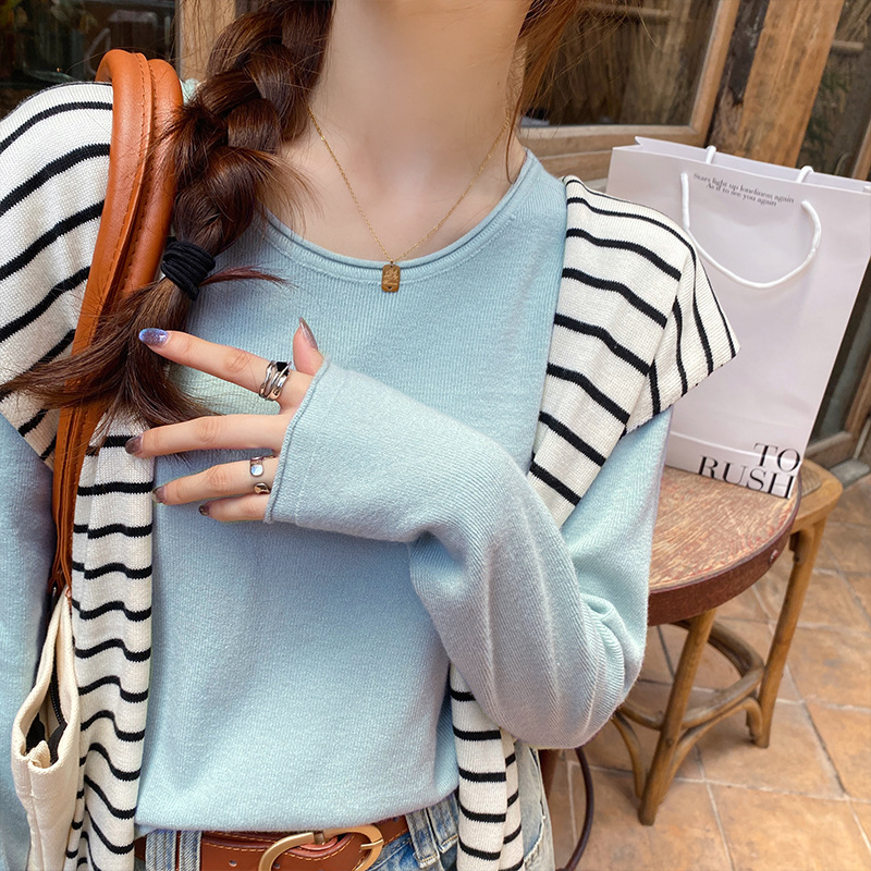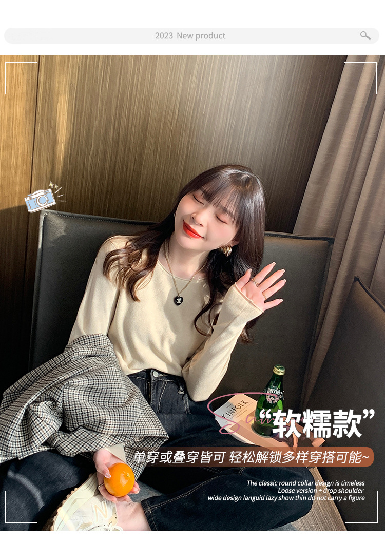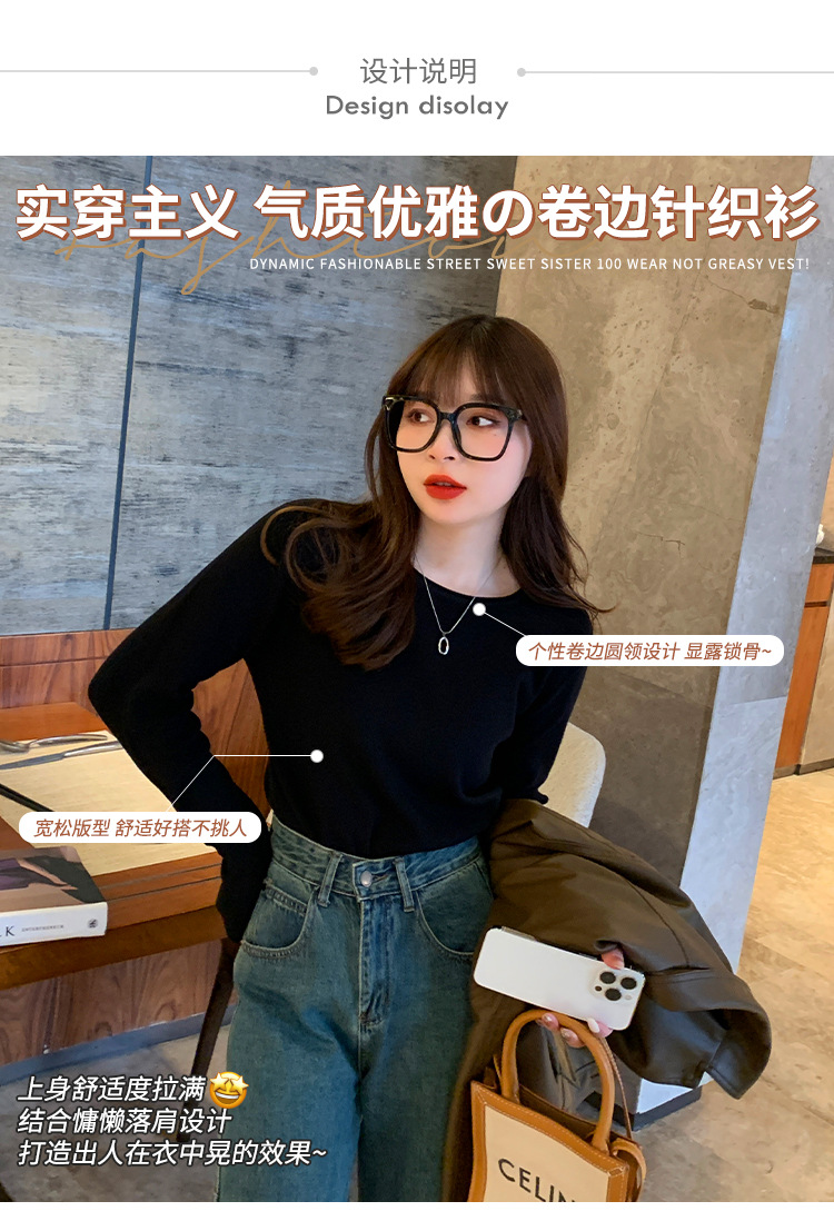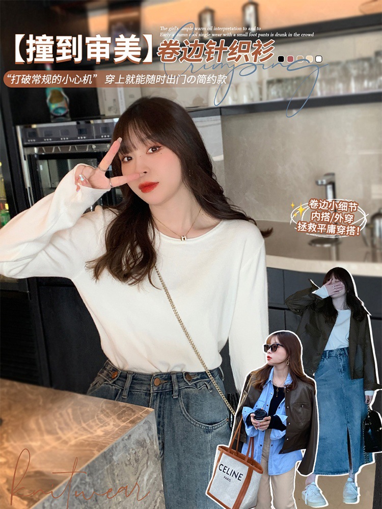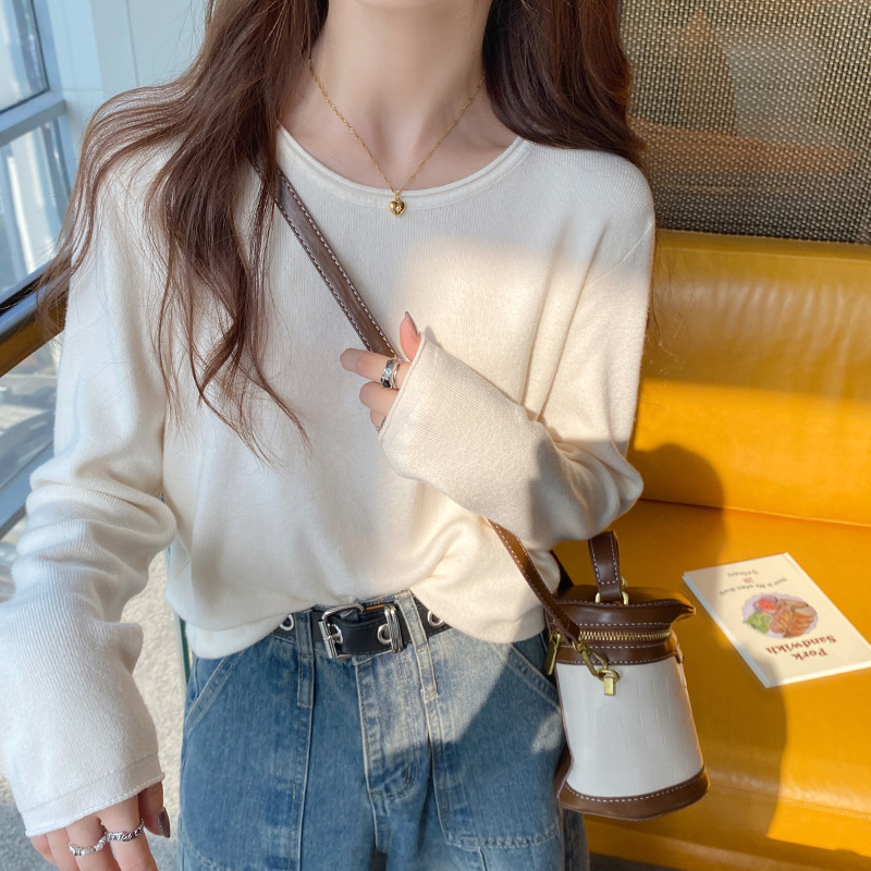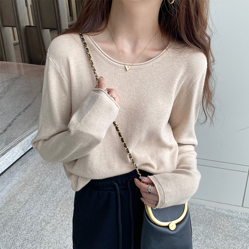 Женская трикотажная кофта на весну-осень 2025: новая модель с круглым вырезом, свободный крой, повседневный стиль, универсальный топ