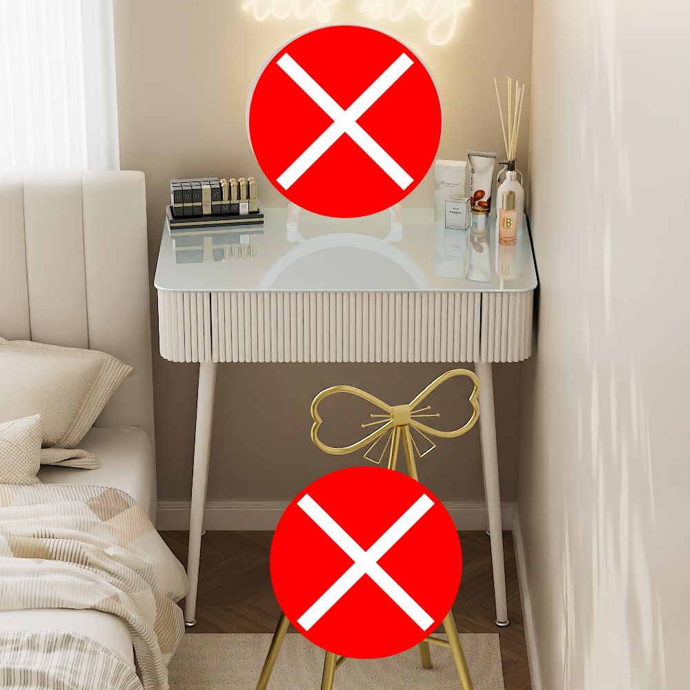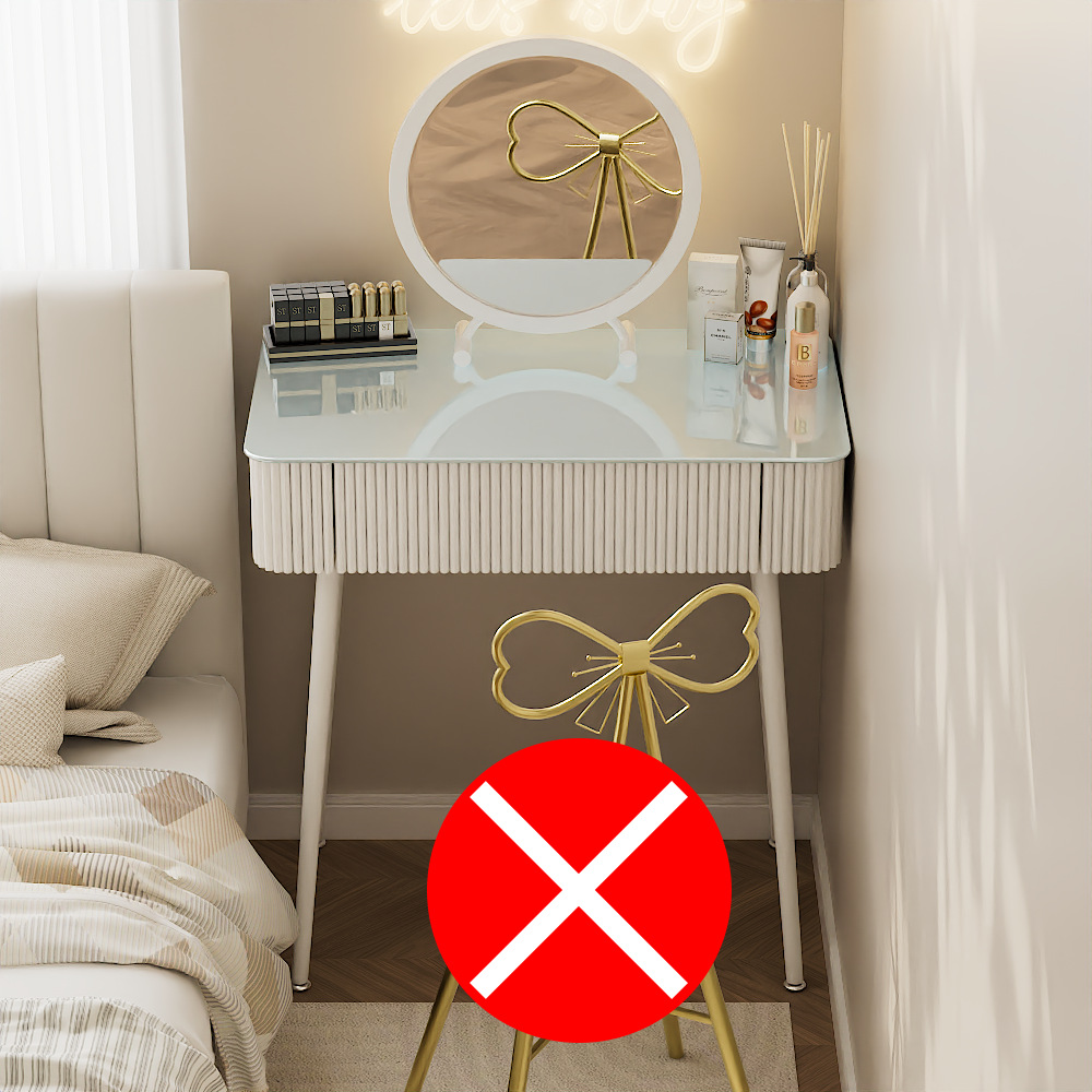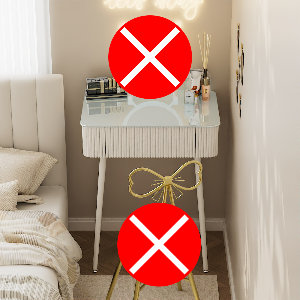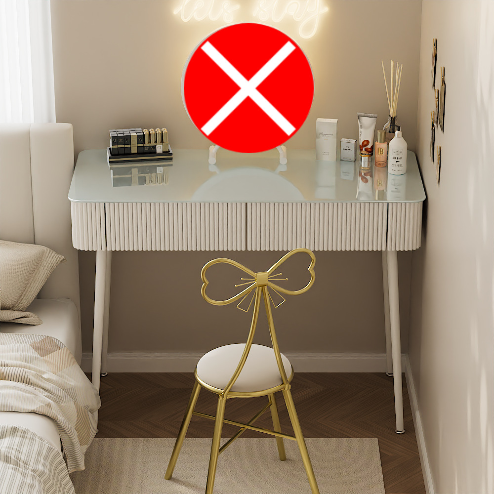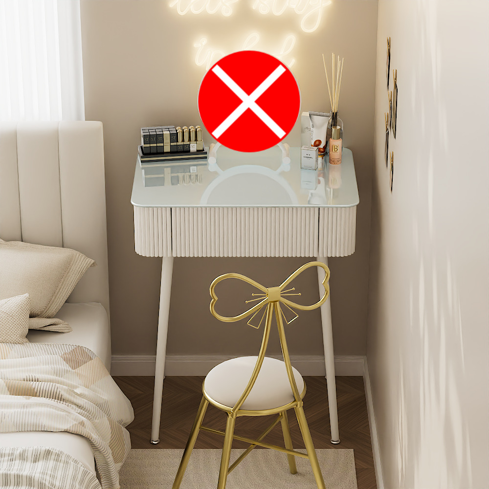 Простая современная спальня с улучшенным чувством косметический стол Небольшой номер с кремовым ветром туалетный столик Сетка красный стеклянный стол
