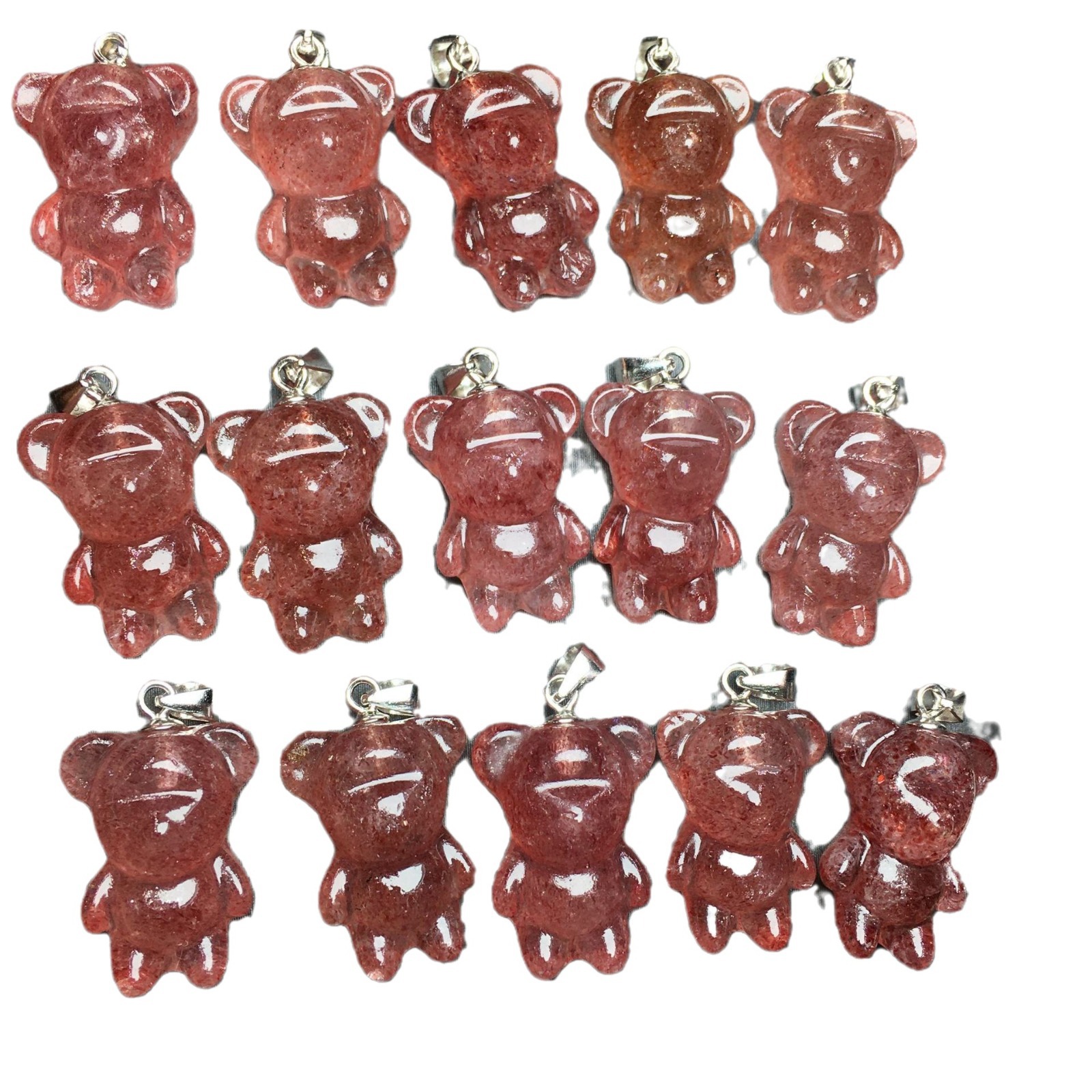 Натуральный клубничный кристалл медведь подвеска, s925 серебряная пряжка инкрустация, изысканный и милый стиль, может пересекать границу оптом