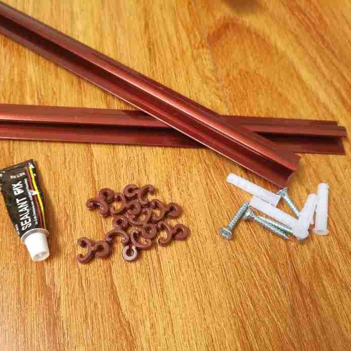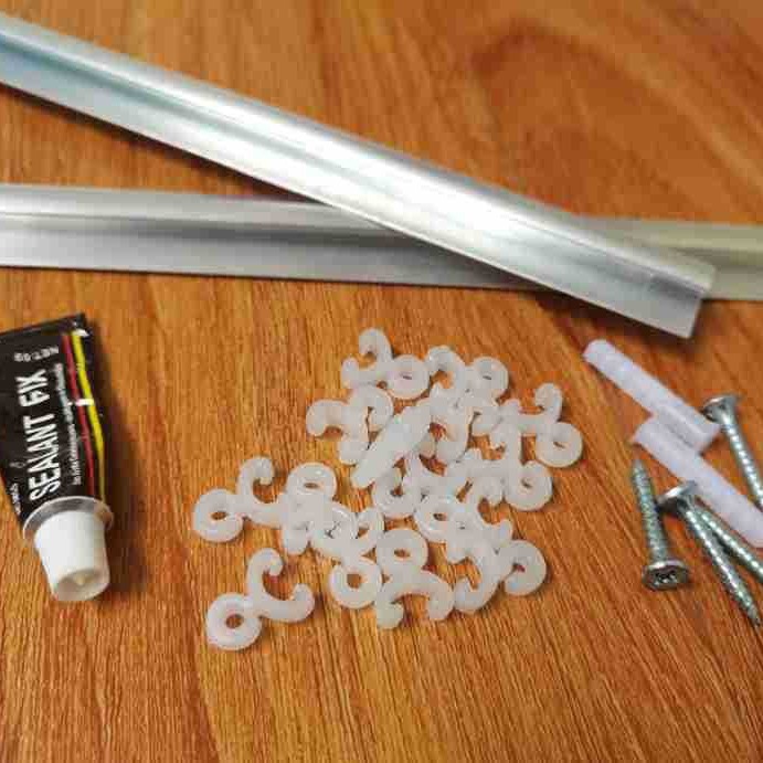 Гусеница из алюминиевого сплава (цвет шампанского) (поставляется в двух секциях 1.0m) 25 крючков и 5 винтов.; Гусеница из алюминиевого сплава (серебристо-белая) ( 1.0m вырезана две секции поставляется) 25 крючков и 5 винтов; Гусеница из алюминиевого сплава (красная и коричневая) ( 1.0m вырезана две секции поставляется) 25 крючков и 5 винтов; Гусеничный клей 12 г; Белый пластиковый крючок; красный пластиковый крючок; 25nn перфорационные винты