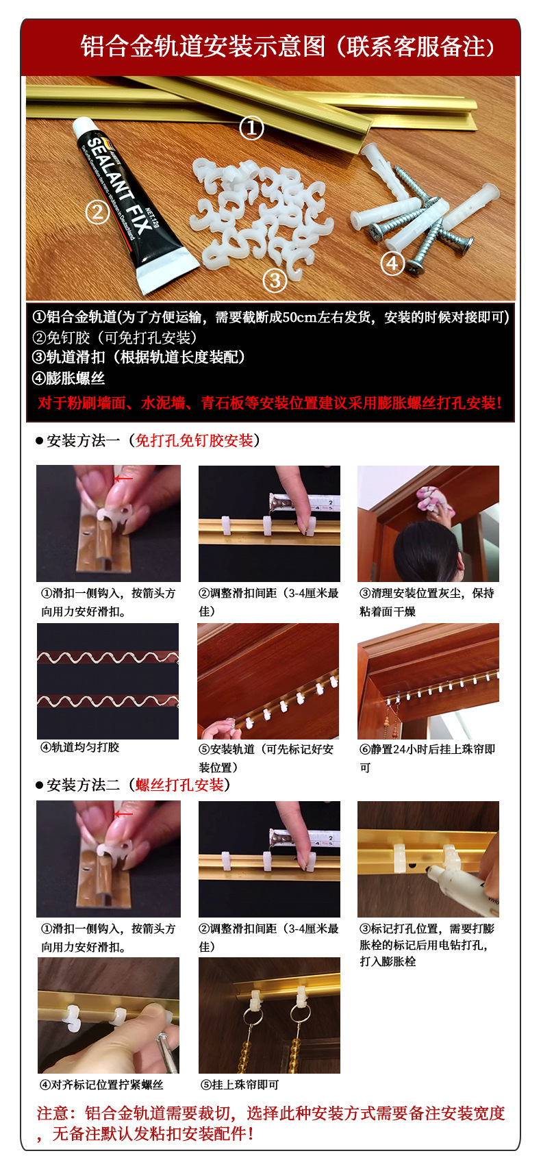 以下是铝合金轨道介绍,打孔或免打孔安装