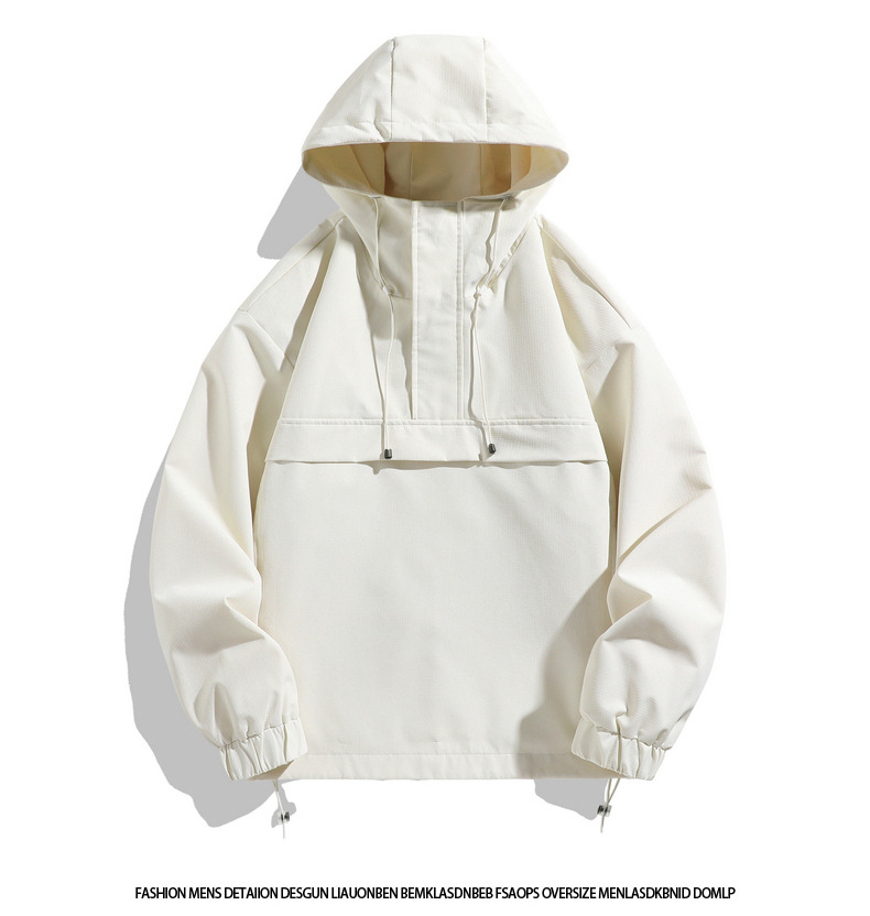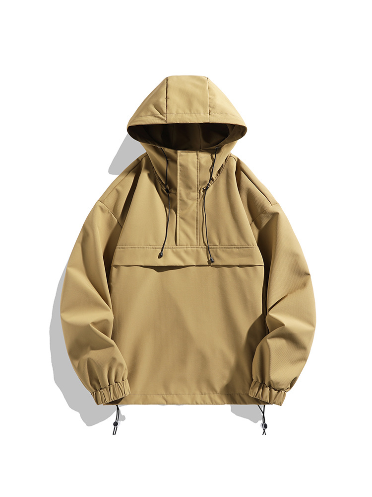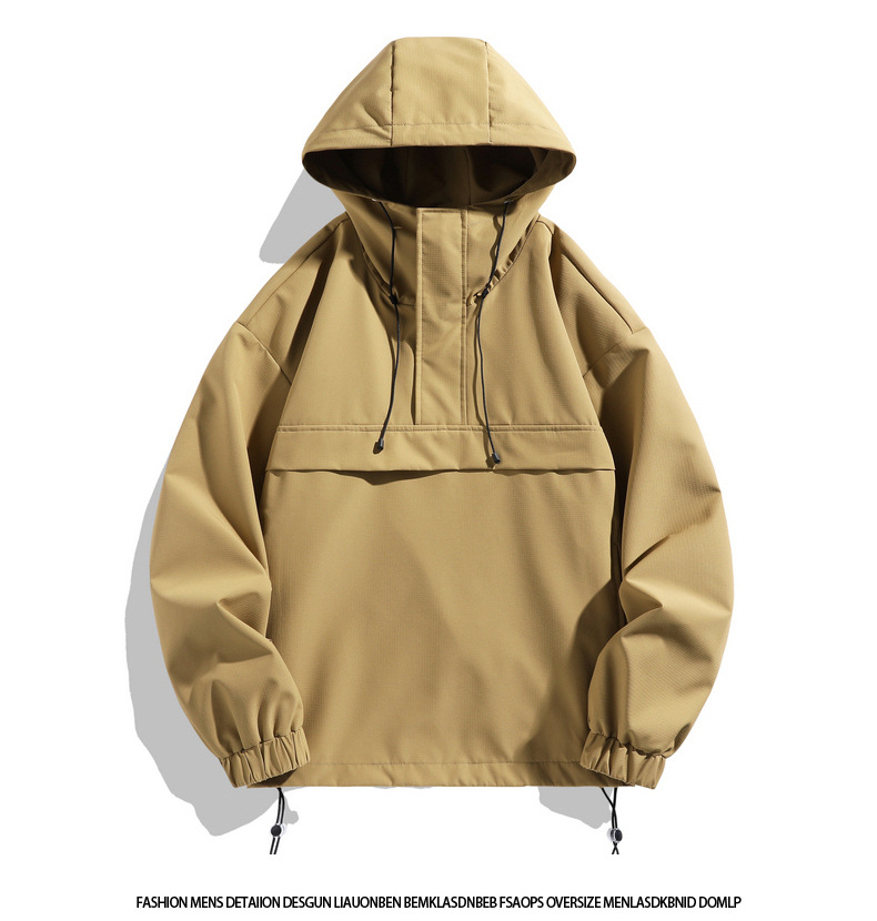 Мужская куртка с капюшоном 2025 года, функциональный стиль, рабочая одежда, пуловер для активного отдыха, полузастегивающийся воротник.
