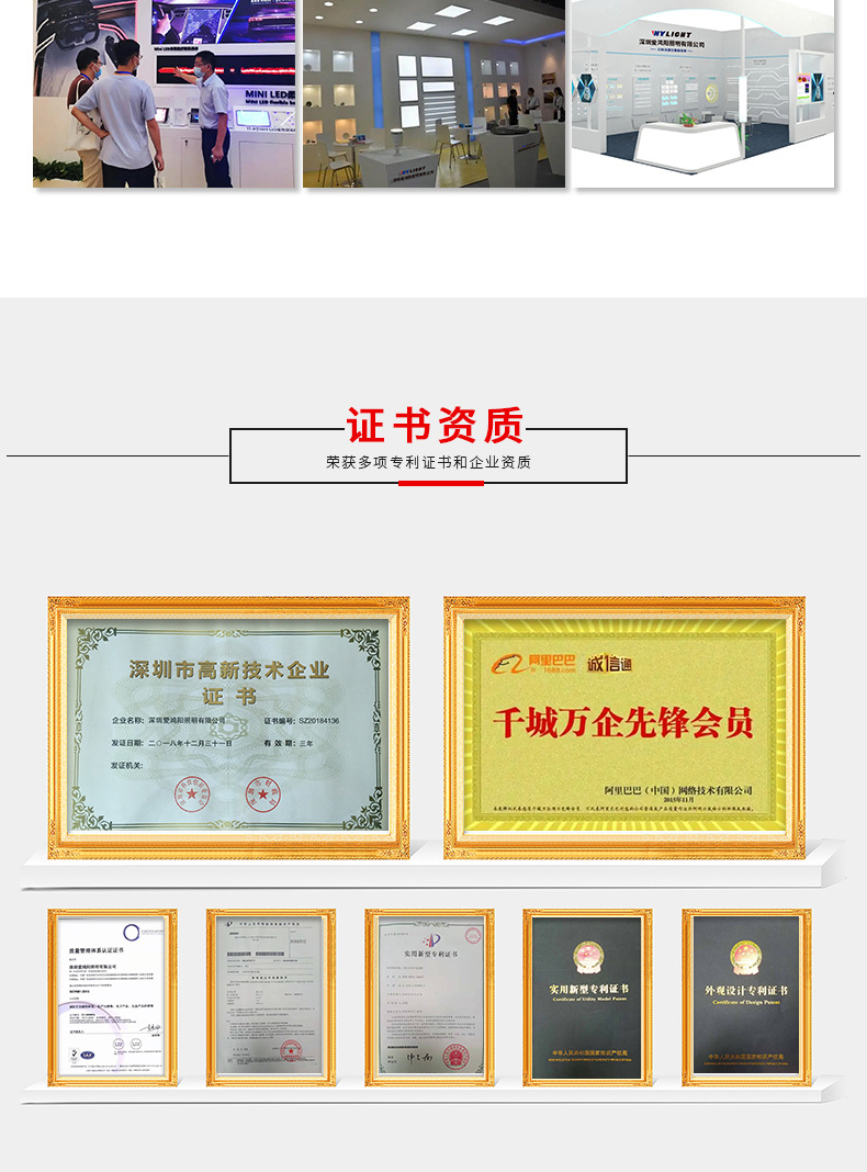 公司先后获得 IS09001:2015、CE、ROHS、LM-80、EN62471 等相关认证。