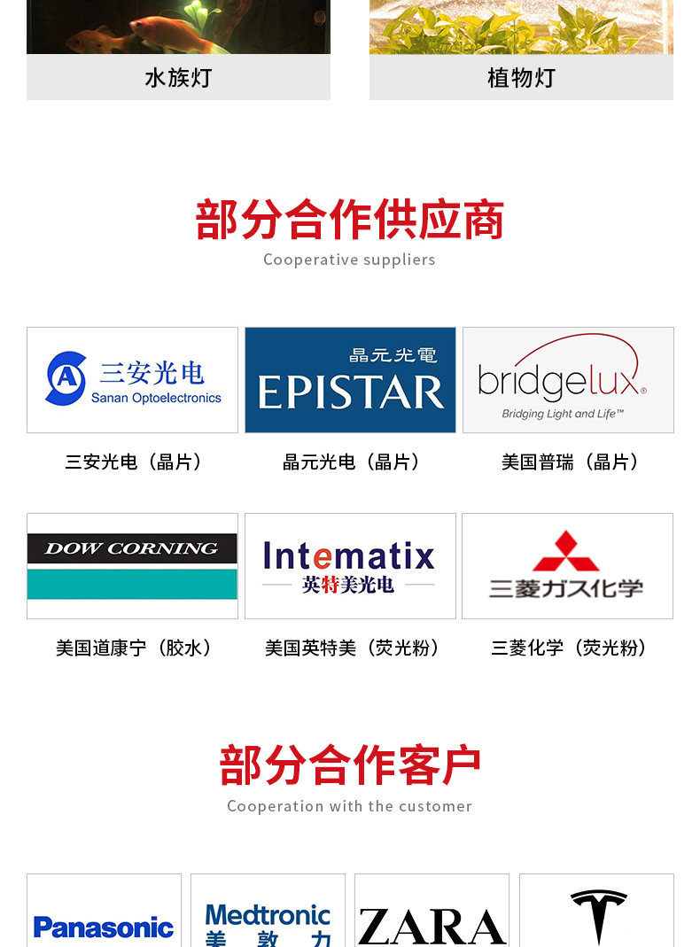 公司的 COB LED 光源、LED 模组等广泛应用于消费电子、智能家电、医疗美容、MiniLED背光源、影视摄影、舞台灯光、汽车照明、潜水照明、投影灯、移动照明、户外骑行、安防产品、视觉光源、氛围灯光、辅助照明、植物照明等领域。公司致力于 COB LED 光源细分领域的创新与发展。