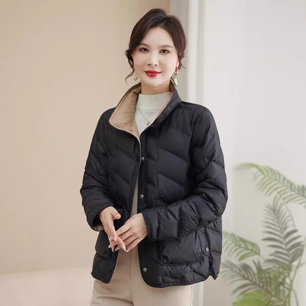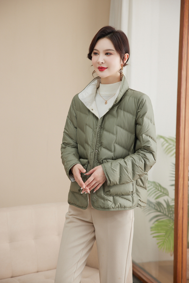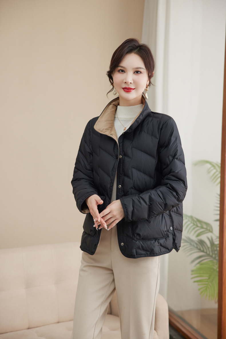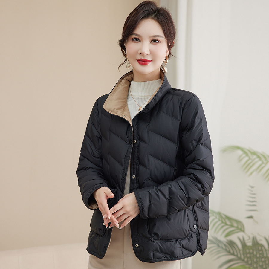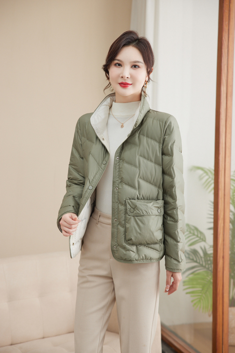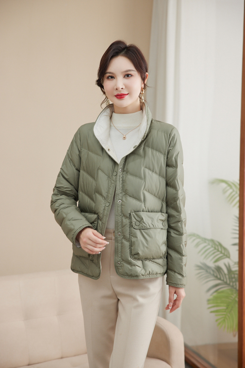 Трансграничный осенний и зимний новый модный воротник с коротким уплотнением белый утиный бархат тонкий теплый пуховик женский куртка с обеих сторон