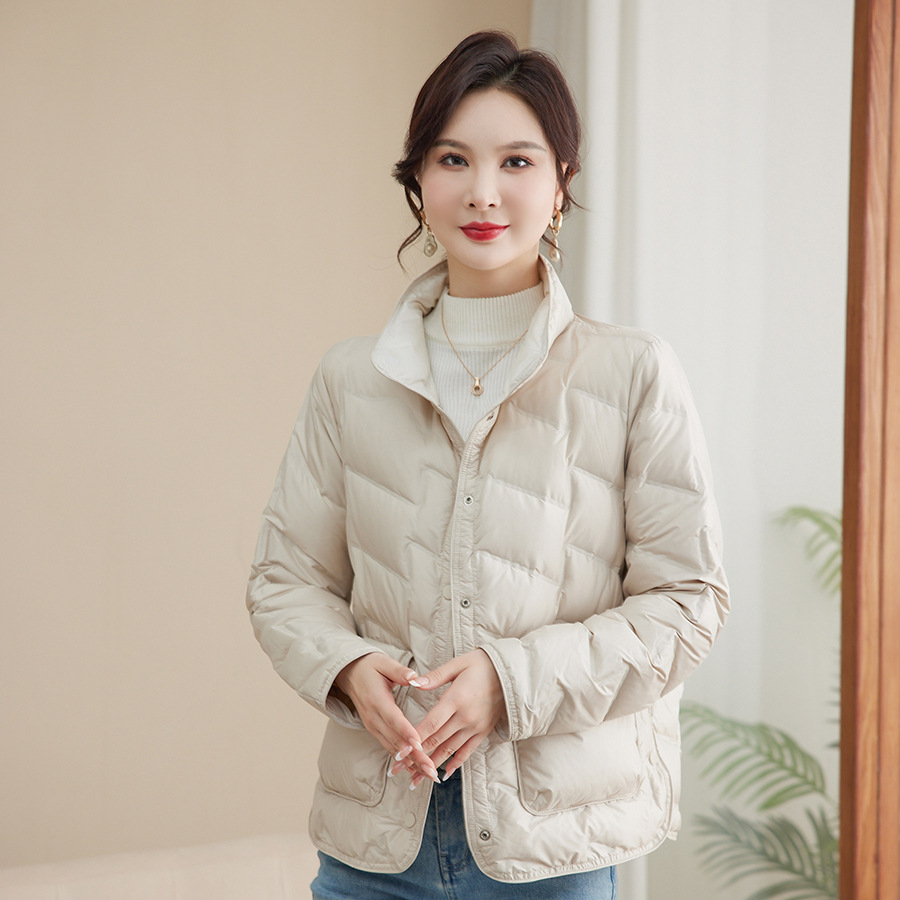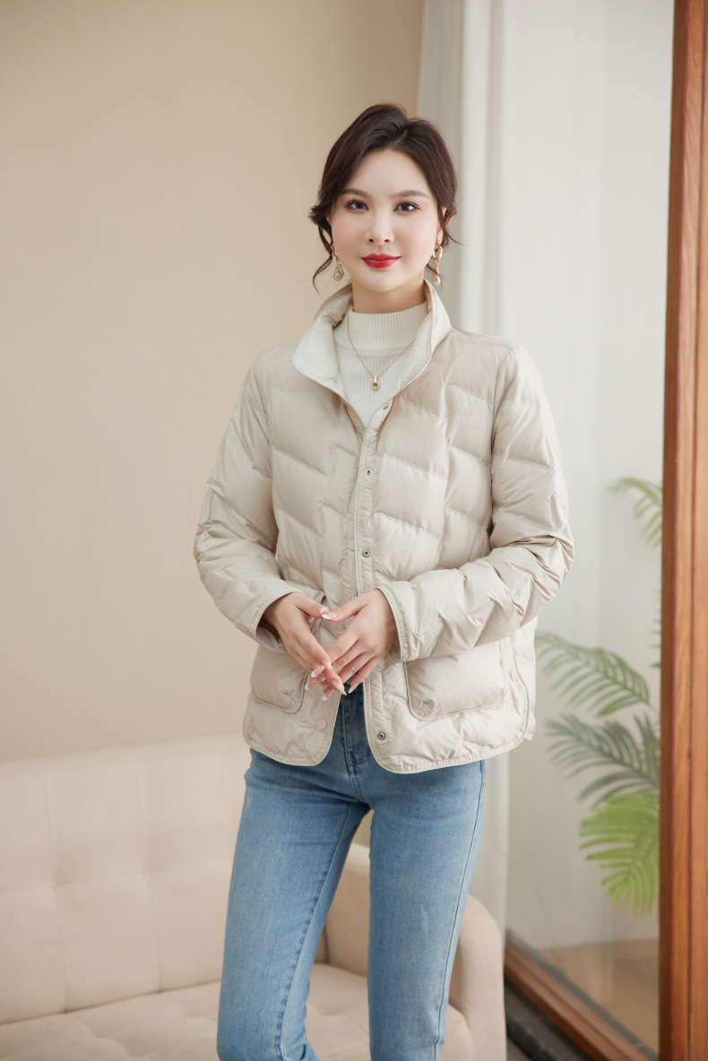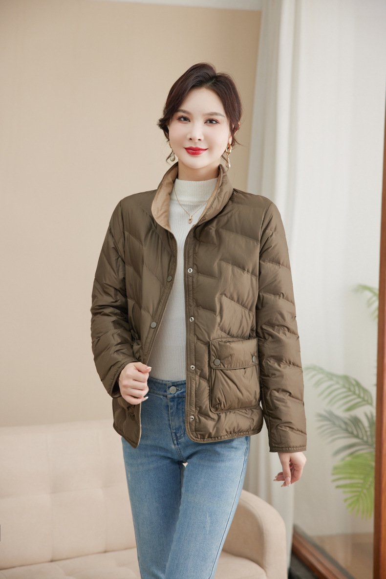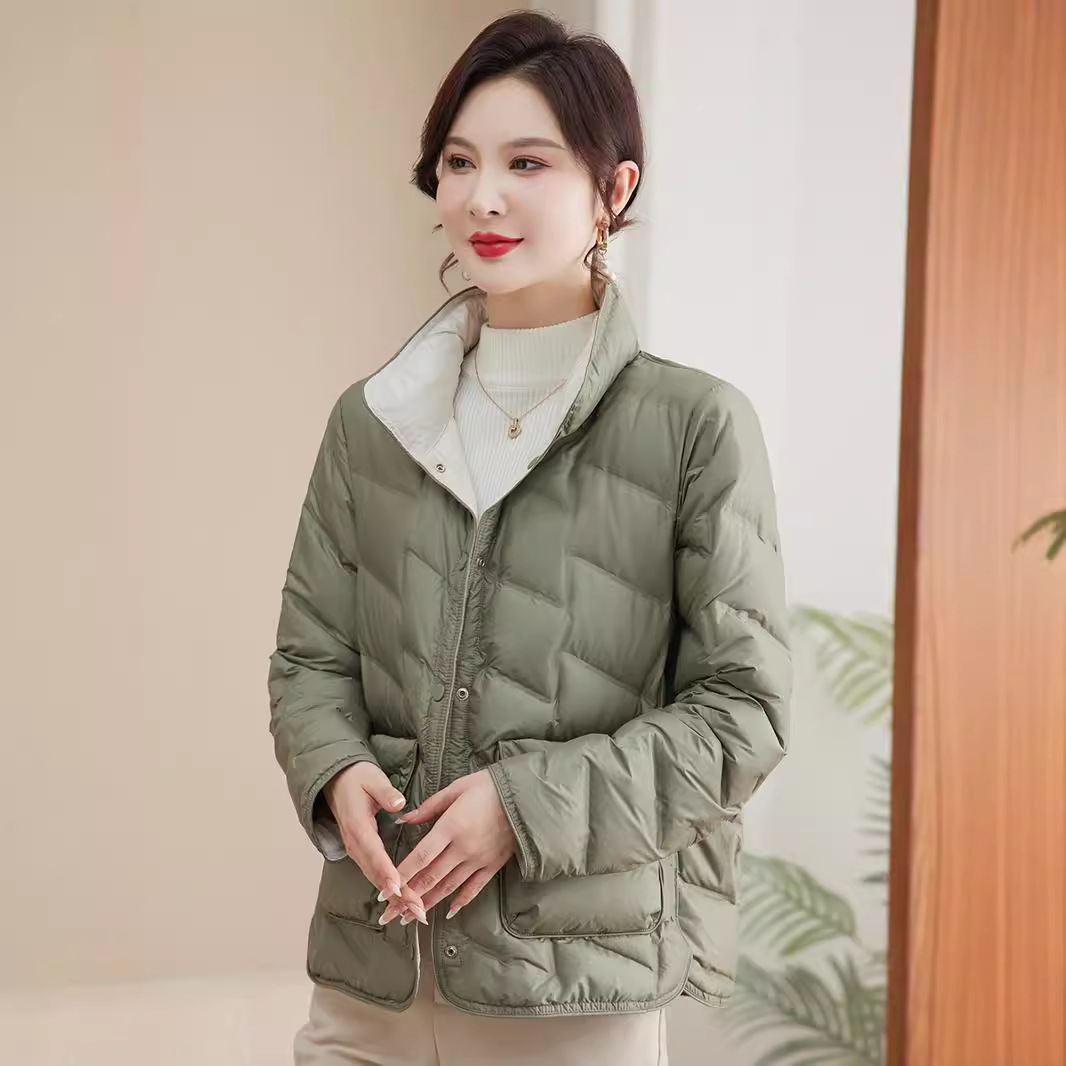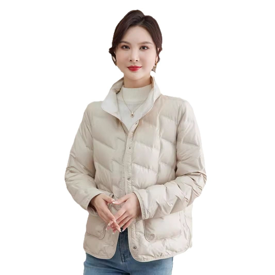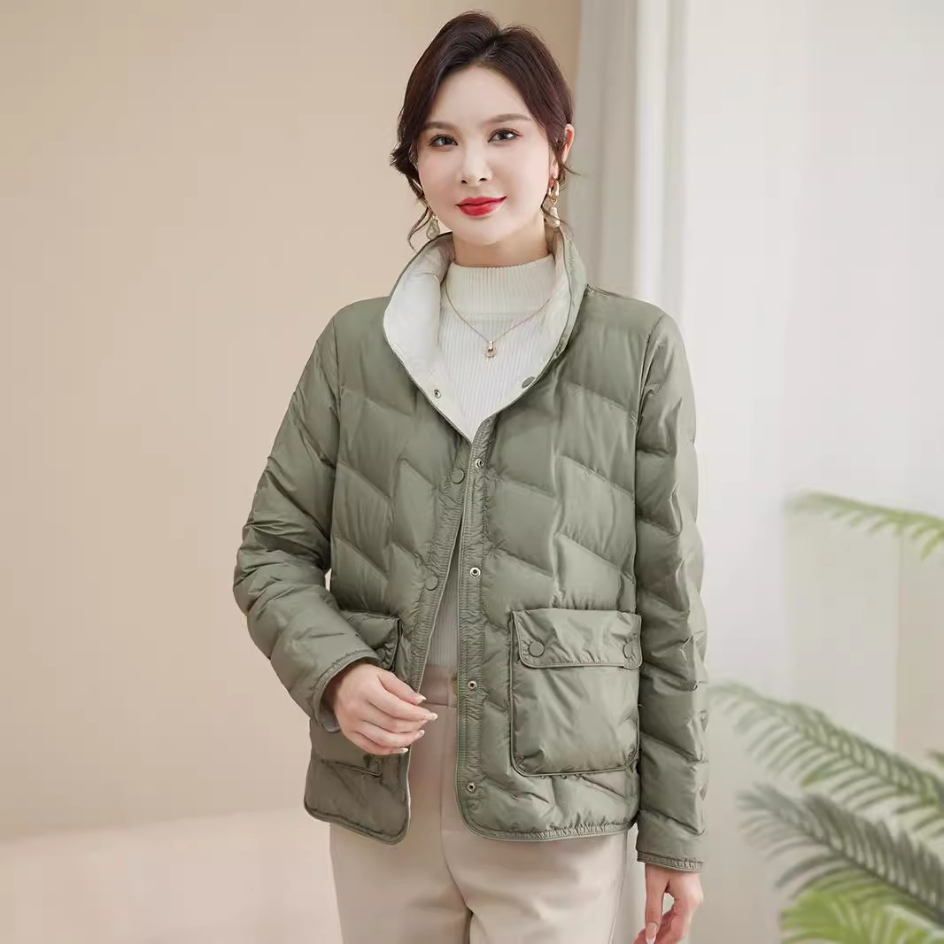 Трансграничный осенний и зимний новый модный воротник с коротким уплотнением белый утиный бархат тонкий теплый пуховик женский куртка с обеих сторон