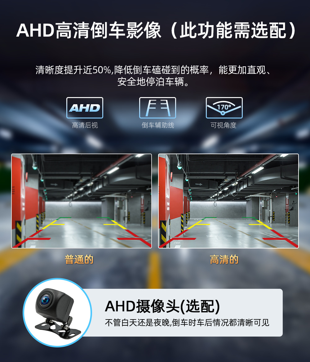 ③高清倒车影像(AHD摄像头需选配)汽车挂入倒车档时,自动切换为倒车影像。