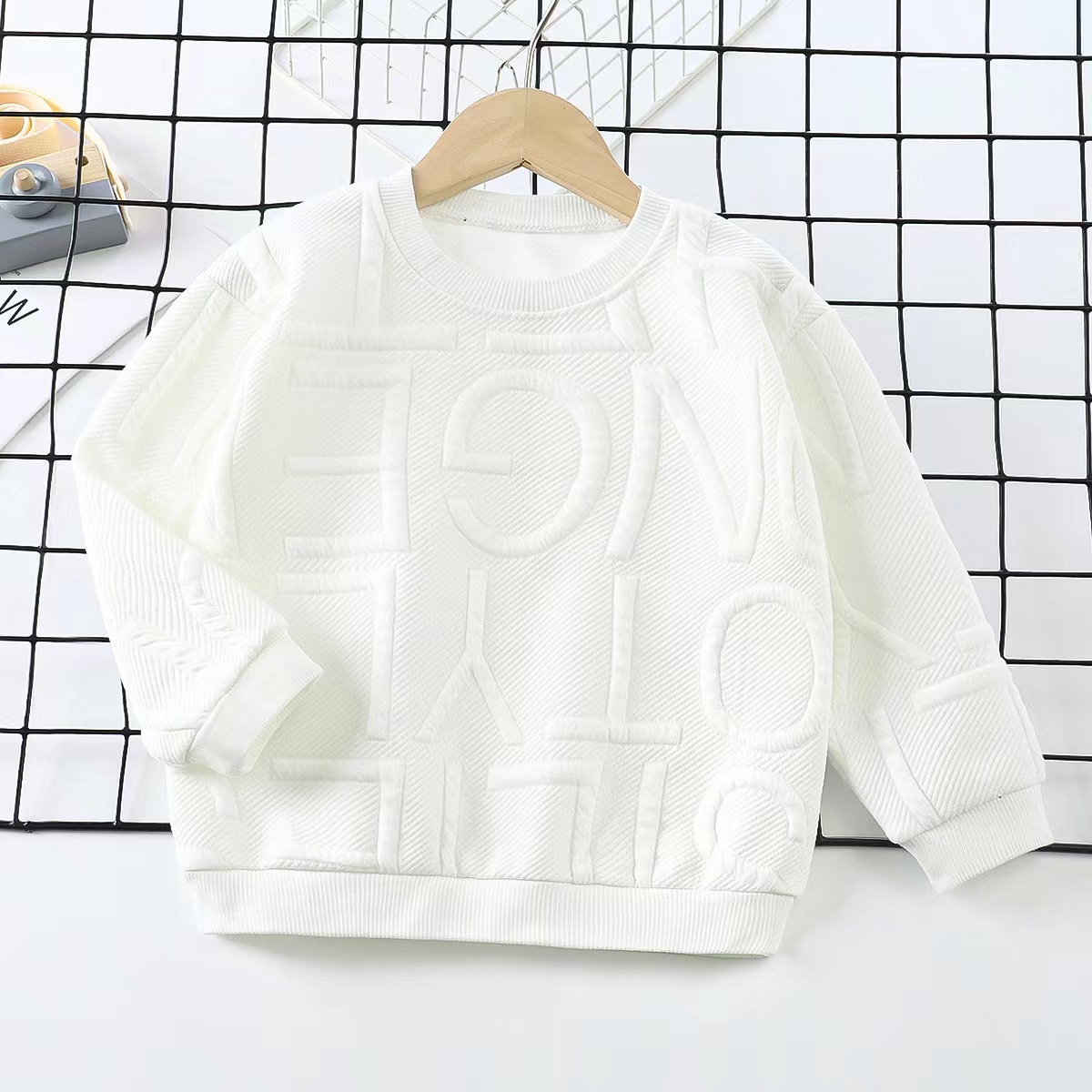 Детская свитера 2025 весна новая жаккардовая футболка для мальчиков с круглым вырезом с длинным рукавом топ для девочек оптом
