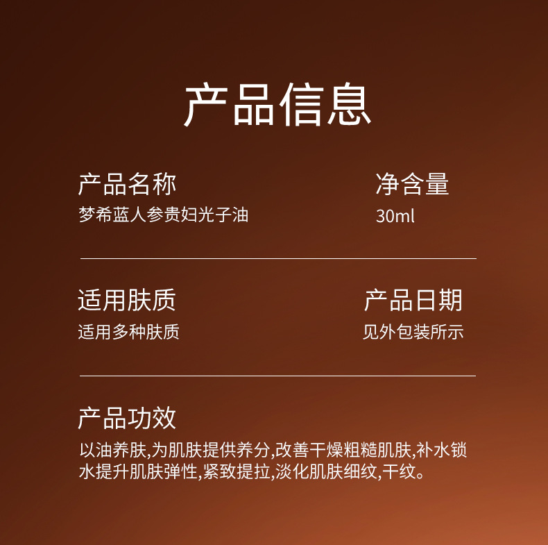 Mengxi Blue Ginseng Lady Photon Oil 30 мл Увлажняющее укрепляющее масло-эссенция для лица против морщин Сухая кожа Успокаивающая кожа