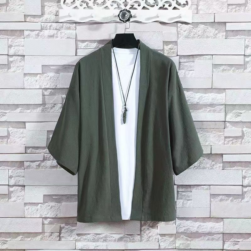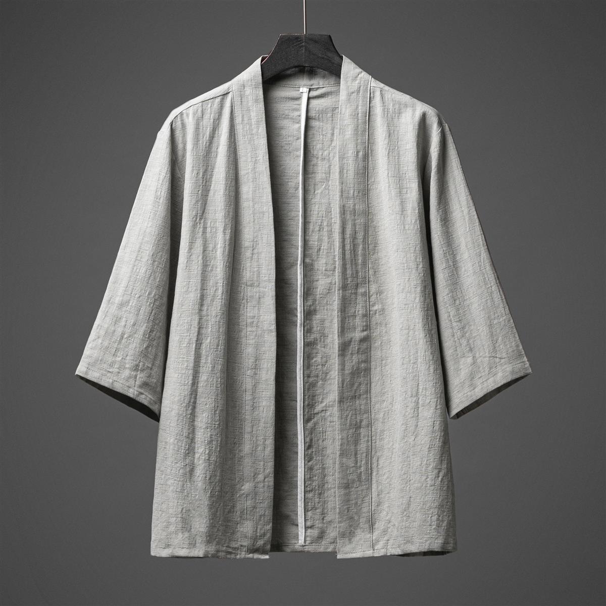 Китайский стиль мужской льняной костюм ретро кардиган старинный стиль мужской свободный большой размер с рукавами из семи частей